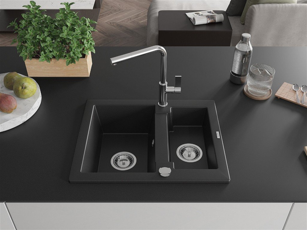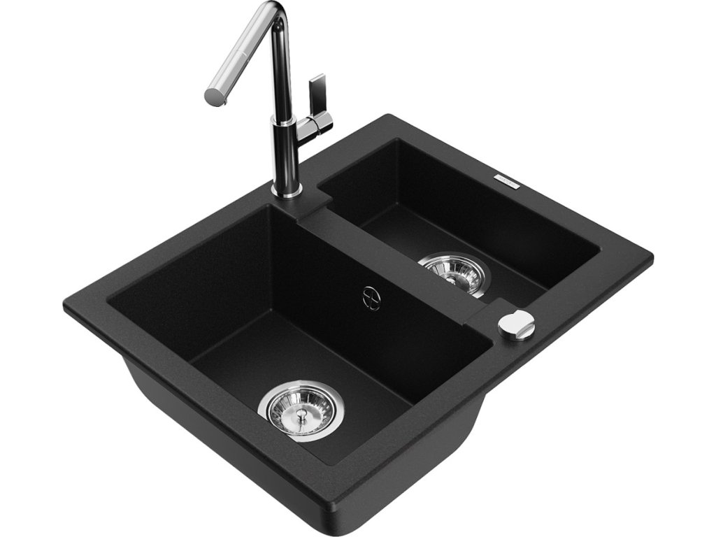 MEXEN/S - Carlos granitový dřez 1.5 včetně baterie Flora, černá 6518-77-670401-00