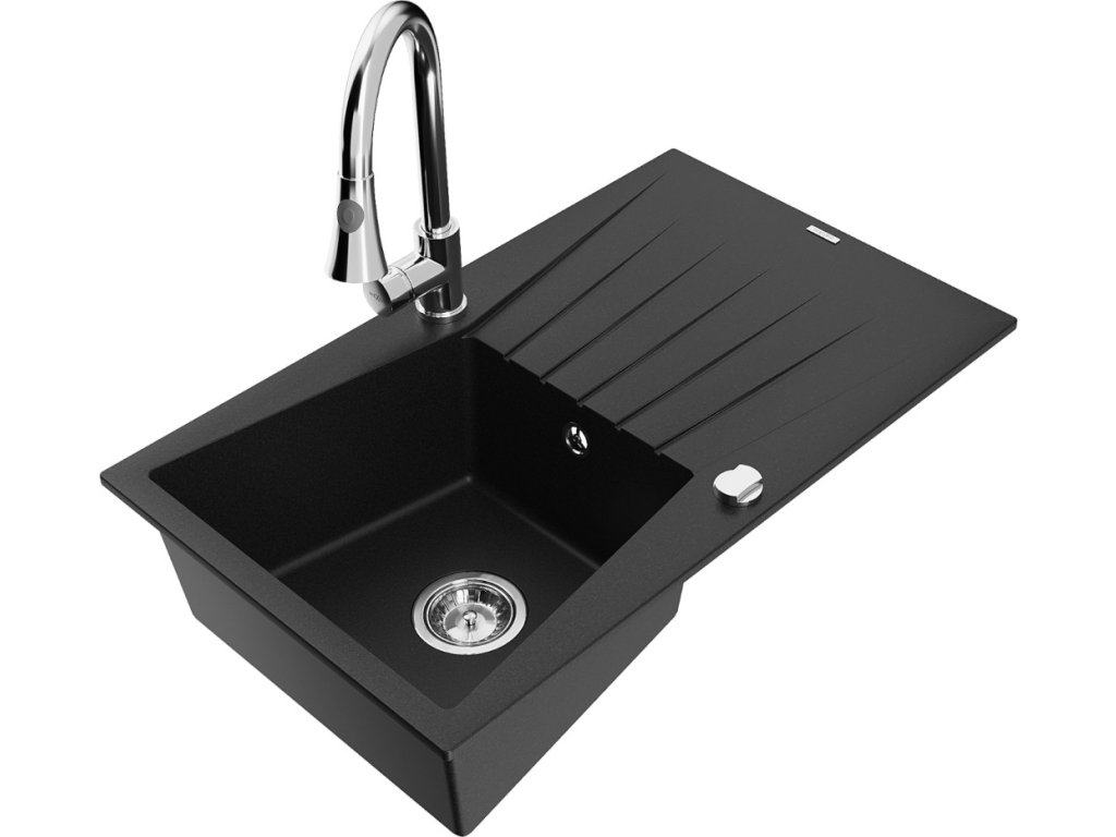 MEXEN/S - Cesar granitový dřez 1 s odkapávačem včetně baterie Elia, černá 6514-77-670101-00