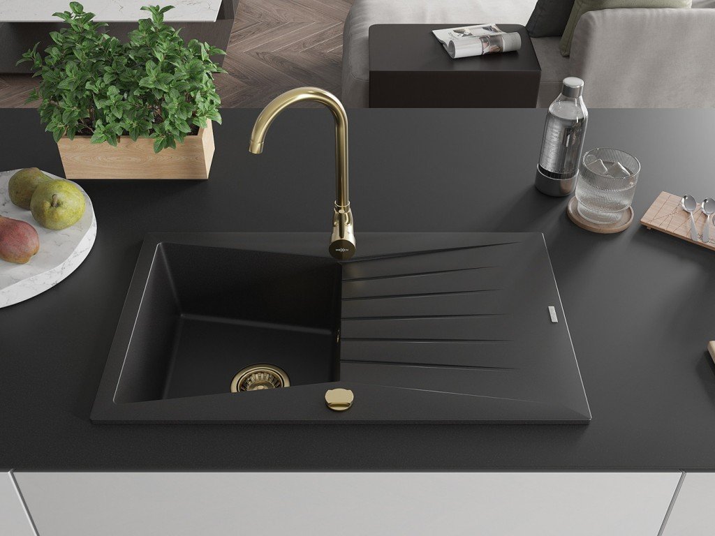 Granitový vestavný dřez s odkapem 77x44 cm v černé barvě kombinuje moderní design a vysokou odolnost. Vyroben z kvalitního granitového kompozitu, který odolává poškrábání,...