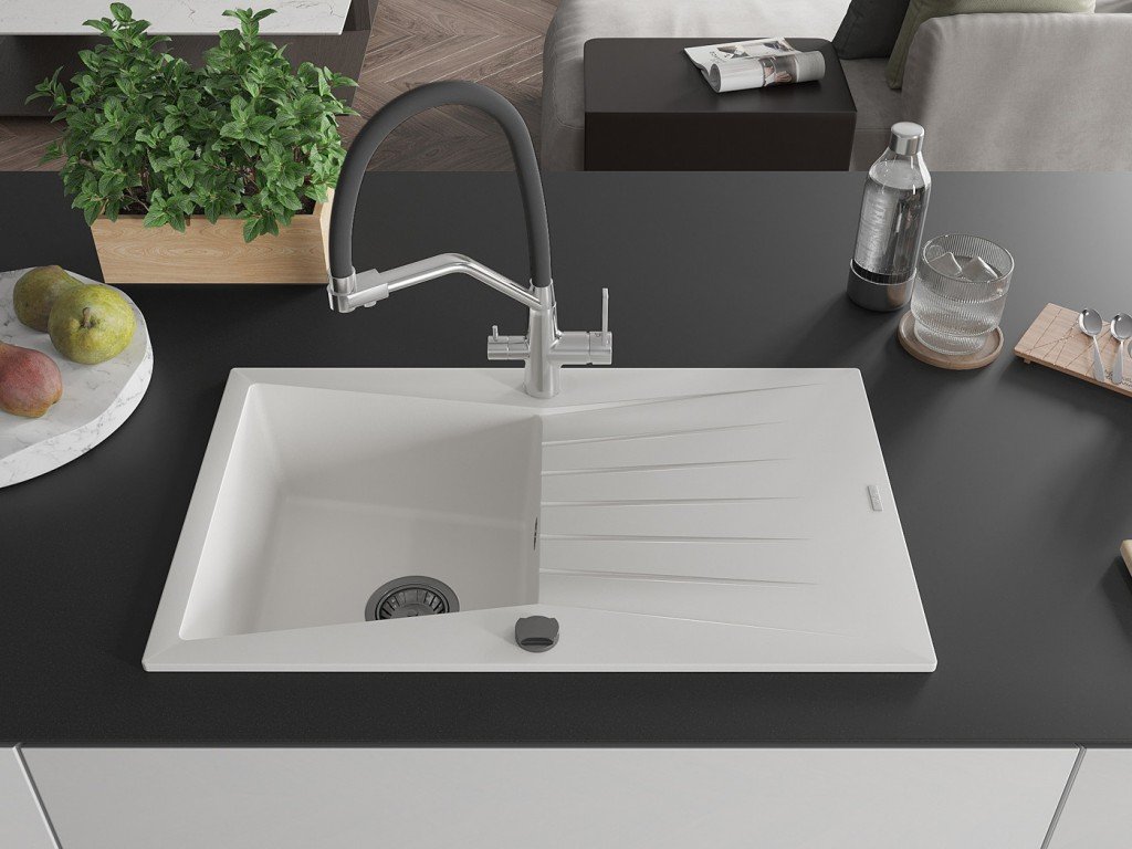 Prodáváme vám nádherný dřez do vaší kuchyně - MEXEN/S - Bruno granitový dřez 1 s odkapávačem včetně baterie Elia, bílá 6513-20-670101-20. Díky svému modernímu designu a...