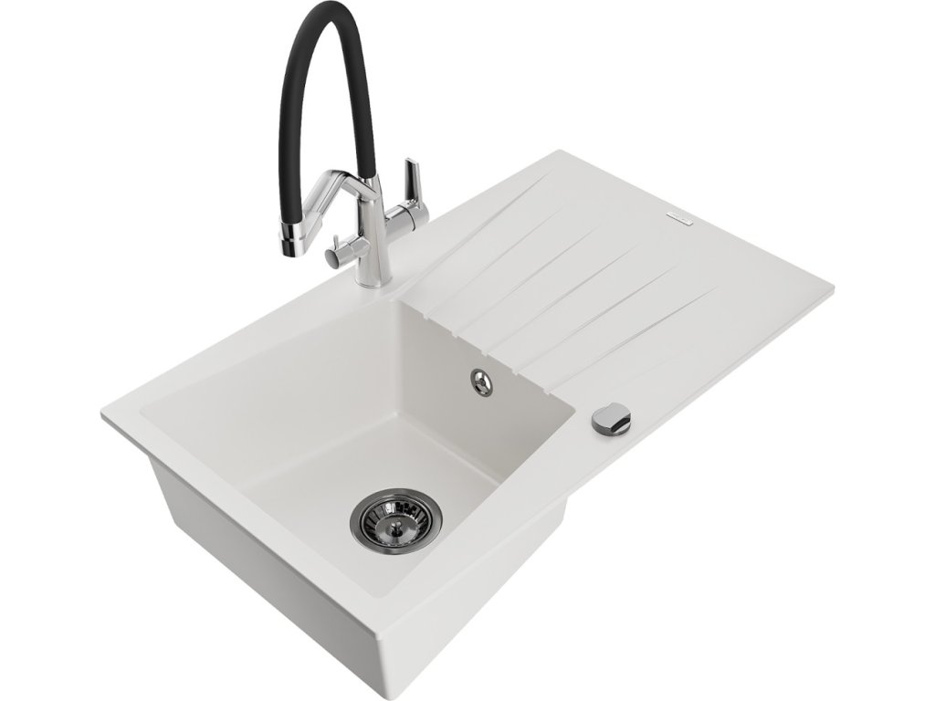 MEXEN/S - Elias granitový dřez 1 s odkapávačem včetně baterie Elia, bílá 6511-20-670101-70 je ideální volbou pro každou moderní kuchyni. Díky svému vysokokvalitnímu materiálu z...