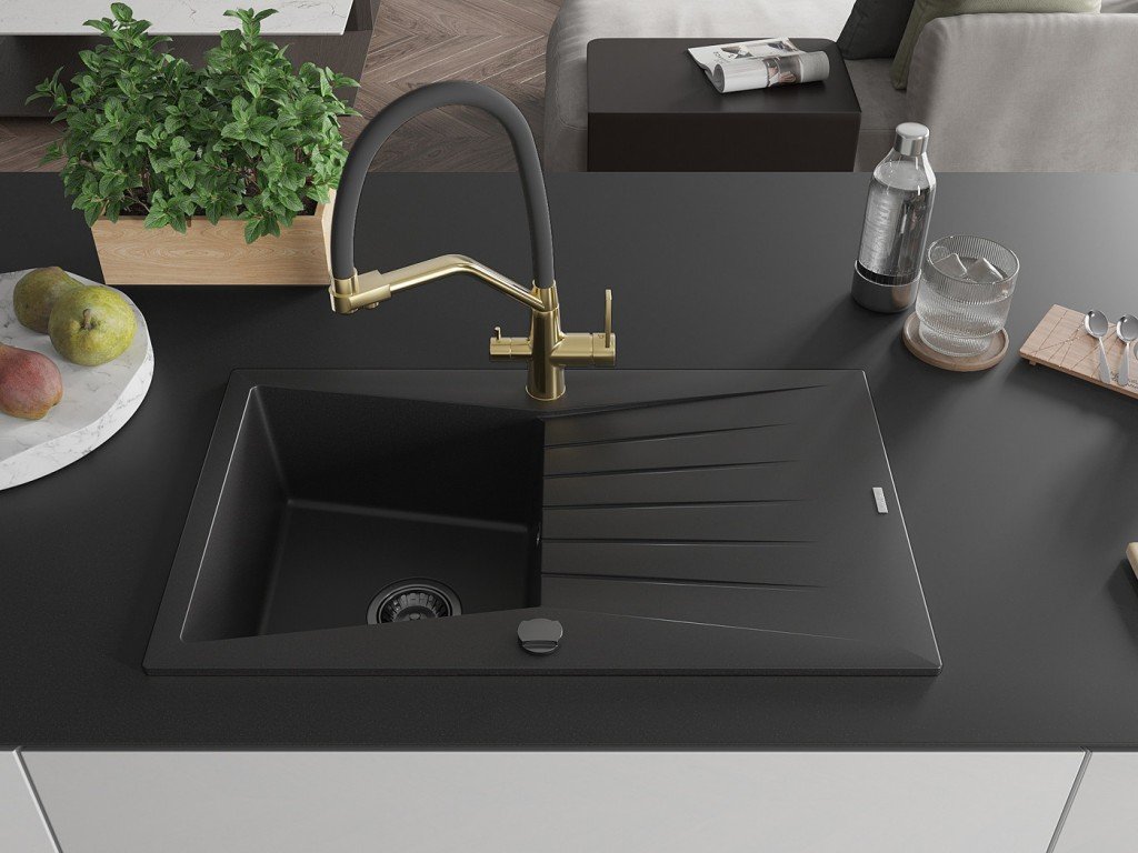 MEXEN/S - Leo granitový dřez 1 s odkapávačem včetně baterie Carla, černá 6501-77-670700-50-B je kombinací funkčnosti a moderního designu pro vaši kuchyň. Granitový dřez značky...