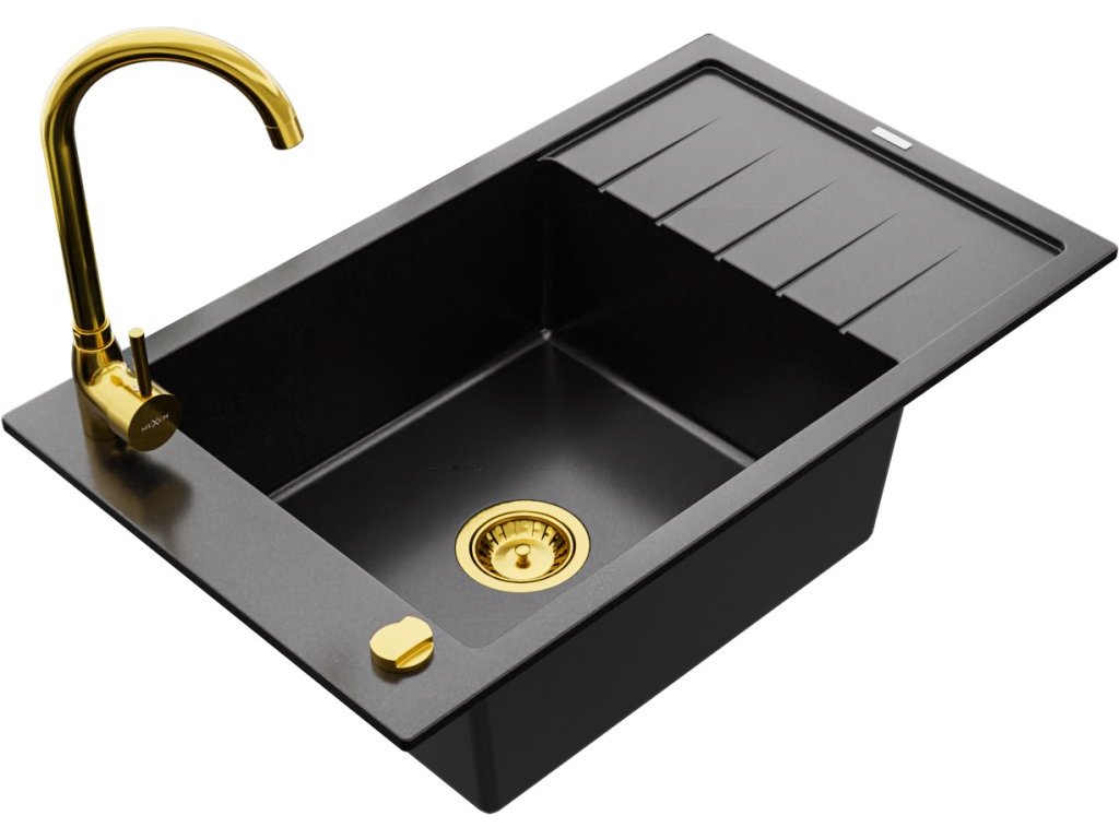 MEXEN/S - Elias granitový dřez 1 s odkapávačem včetně baterie Telma, černá 6511-77-670200-50