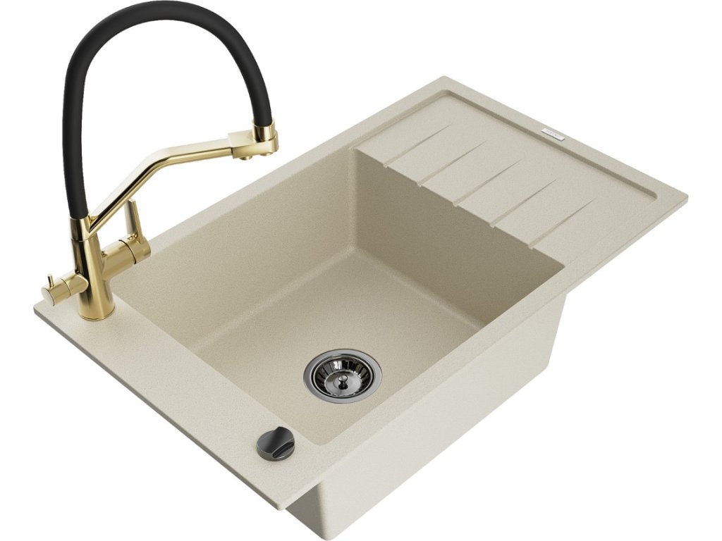 MEXEN/S - Elias granitový dřez s odkapávačem včetně baterie Duo, béžová 6511-69-671701-57-B