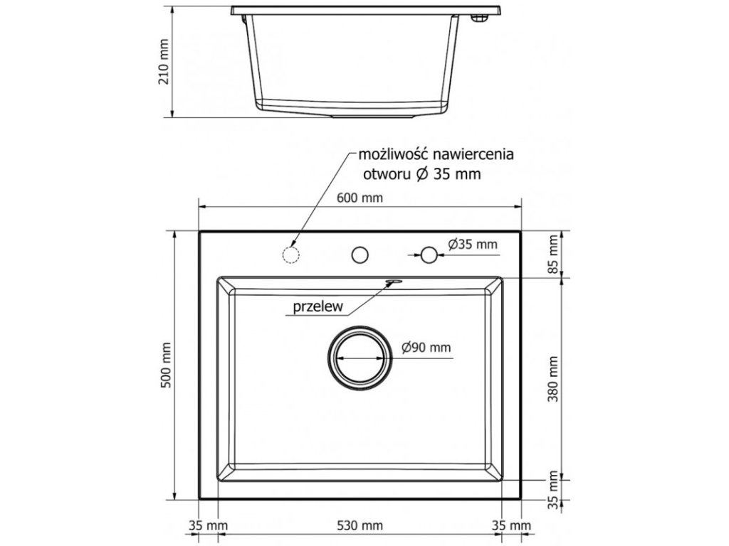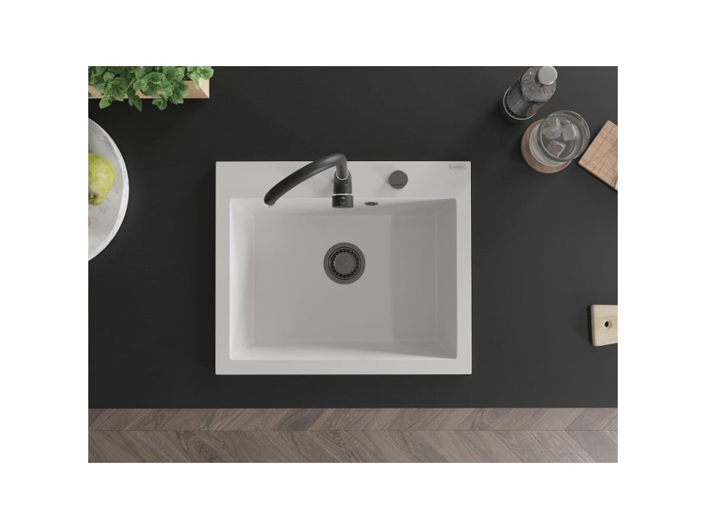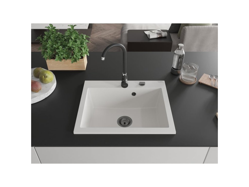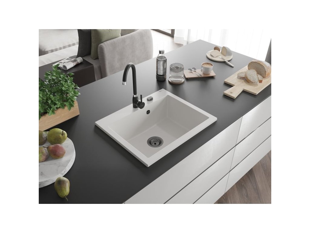 MEXEN/S - Elix granitový dřez 1-miska 600 x 500 mm, bílá, sifon černá 6525601005-20-B