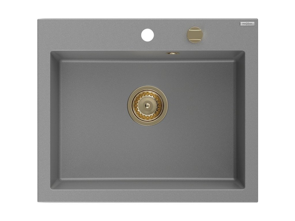 MEXEN/S - Elix granitový dřez 1-miska 600 x 500 mm, šedý, sifon zlatá 6525601005-71-G