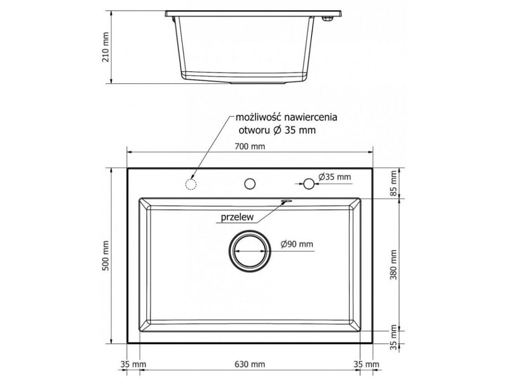 Jeden dodatečný vyfrézovaný otvor pro samoděrování ø35