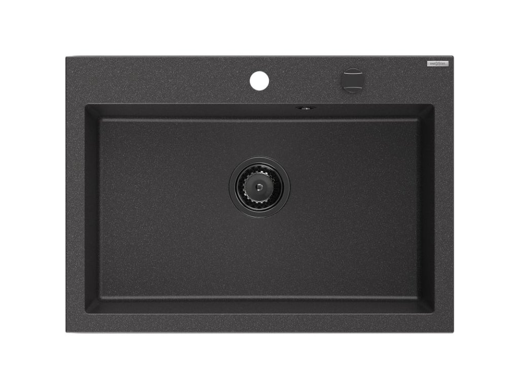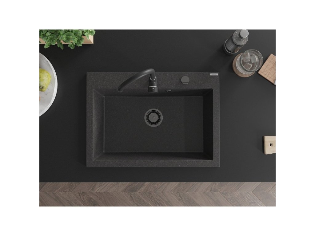 MEXEN/S - Elix granitový dřez 1-miska 700 x 500 mm, černá kropenatá, sifon černá 6526701005-76-B