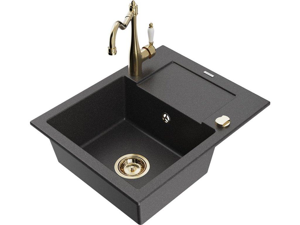 MEXEN/S - Enzo granitový dřez 1-miska s odkapávačem včetně baterie Carla, černá kropenatá 6506-76-670700-50 + slevový kód