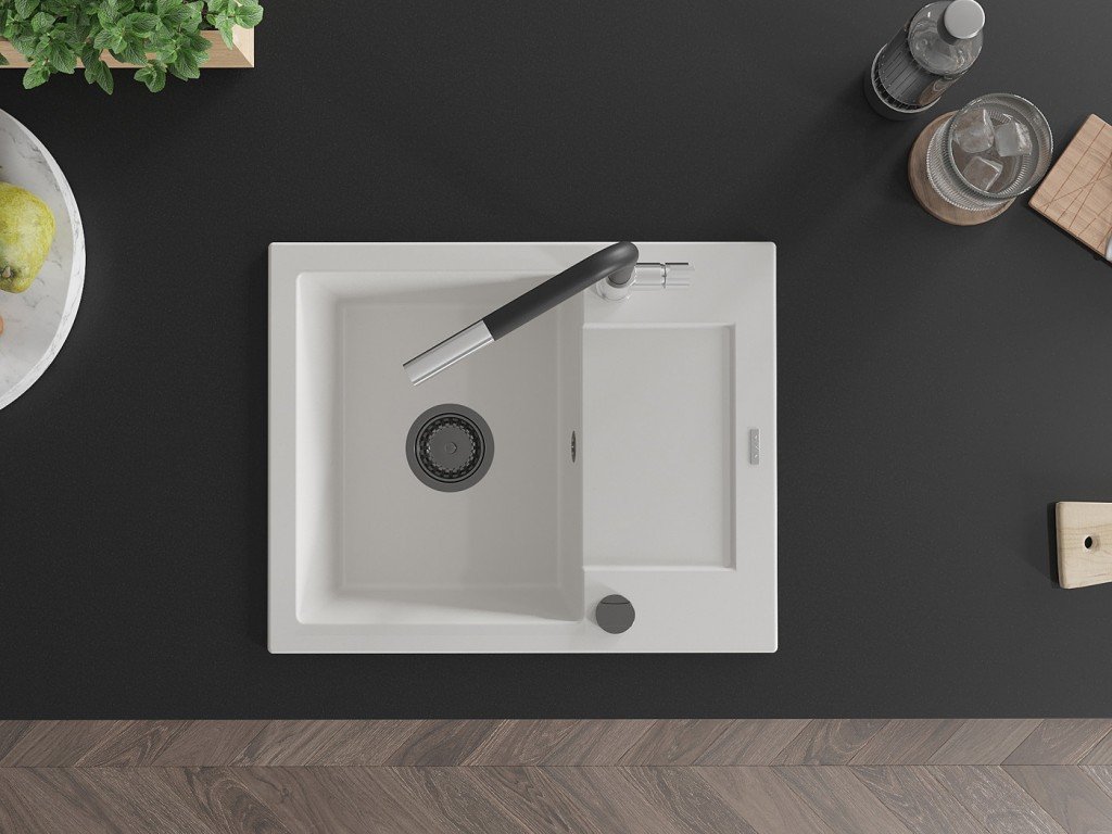 MEXEN/S - Enzo granitový dřez 1-miska s odkapávačem včetně baterie Flora, bílá 6506-20-670401-07-B + slevový kód