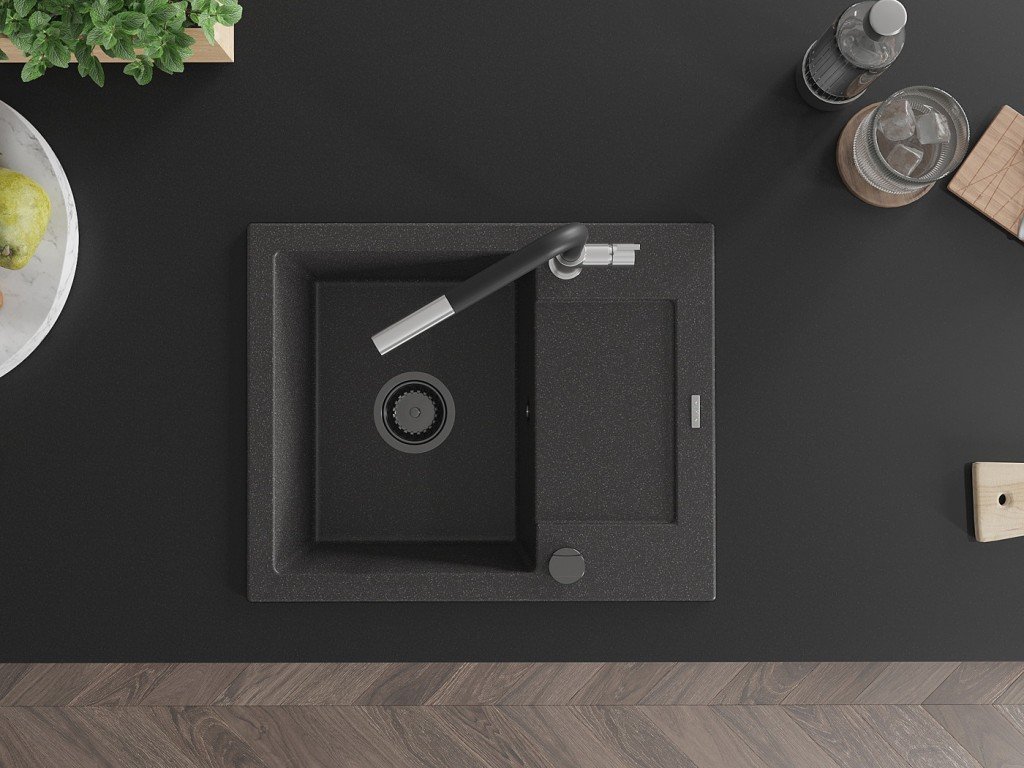 Granitový vestavný dřez s odkapem 77x44 cm v černé barvě kombinuje moderní design a vysokou odolnost. Vyroben z kvalitního granitového kompozitu, který odolává poškrábání,...