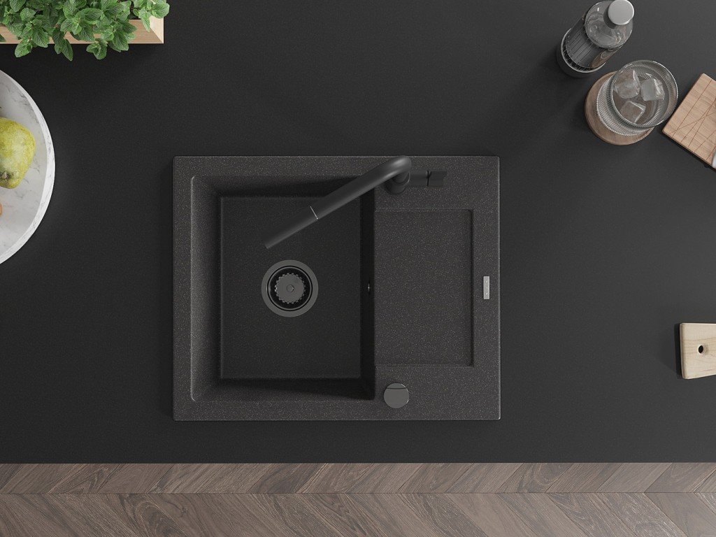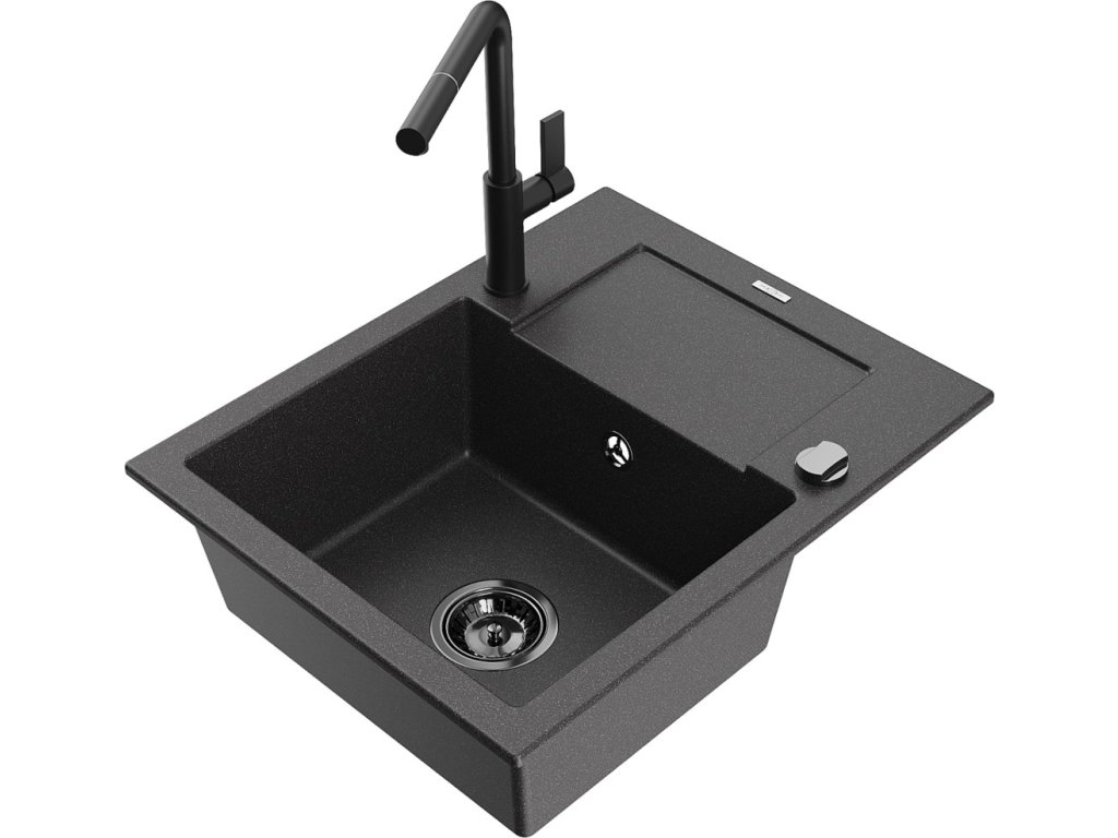 Granitový vestavný dřez s odkapem 77x44 cm v černé barvě kombinuje moderní design a vysokou odolnost. Vyroben z kvalitního granitového kompozitu, který odolává poškrábání,...
