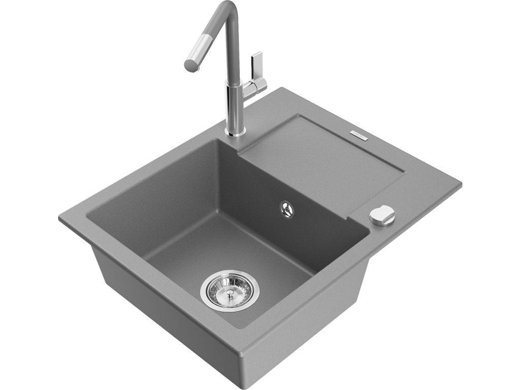 MEXEN/S - Enzo granitový dřez 1-miska s odkapávačem včetně baterie Flora, šedá 6506-71-670401-06
