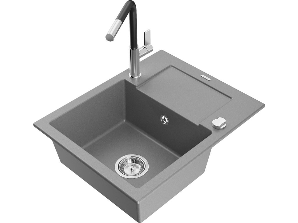 MEXEN/S - Enzo granitový dřez 1-miska s odkapávačem včetně baterie Flora, šedá 6506-71-670401-07