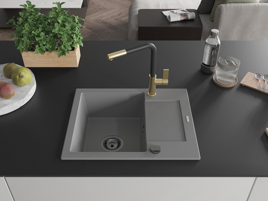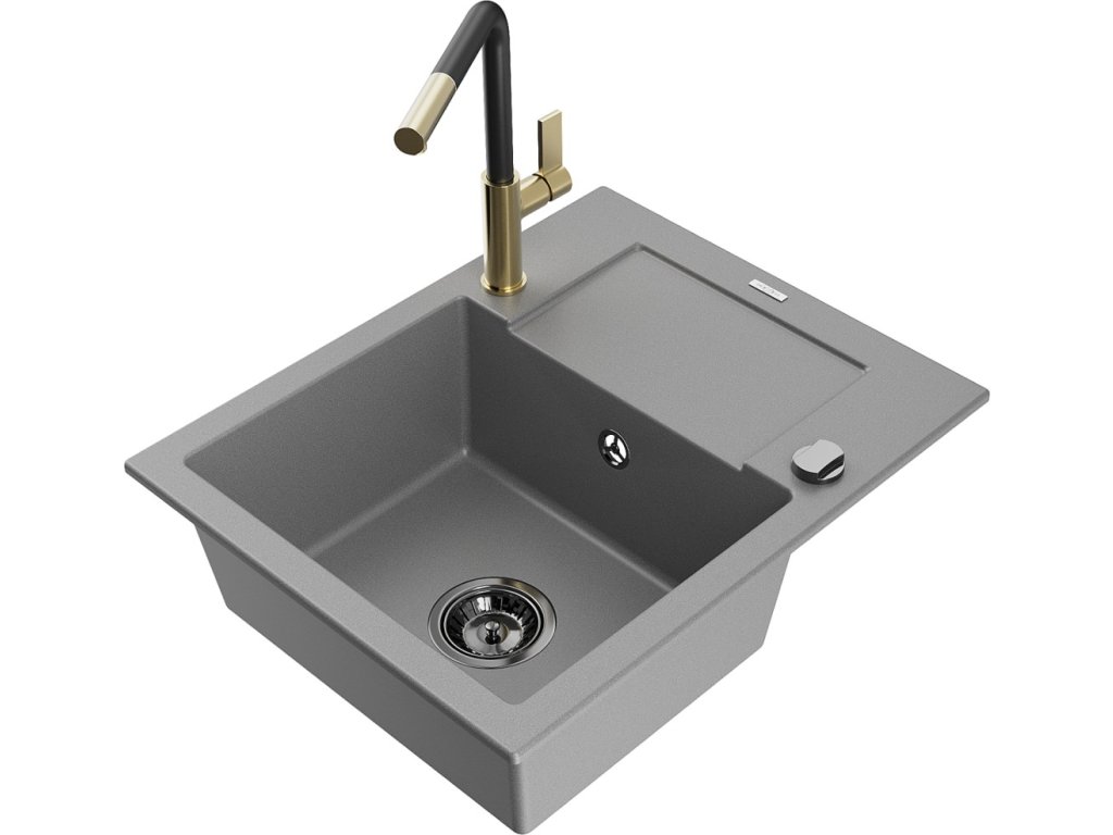 MEXEN/S - Enzo granitový dřez 1-miska s odkapávačem včetně baterie Flora, šedá 6506-71-670401-57-B + slevový kód