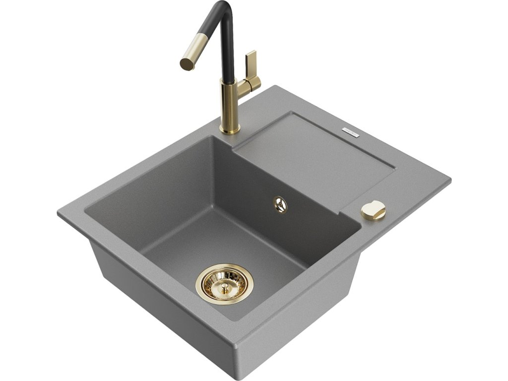MEXEN/S - Enzo granitový dřez 1-miska s odkapávačem včetně baterie Flora, šedá 6506-71-670401-57-G