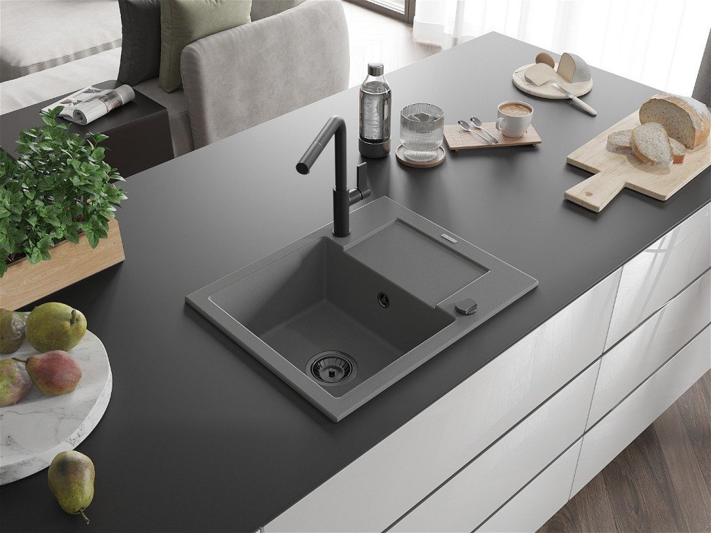 Granitový vestavný dřez s odkapem 77x44 cm v černé barvě kombinuje moderní design a vysokou odolnost. Vyroben z kvalitního granitového kompozitu, který odolává poškrábání,...