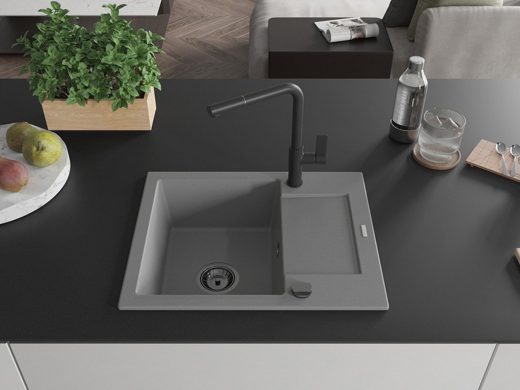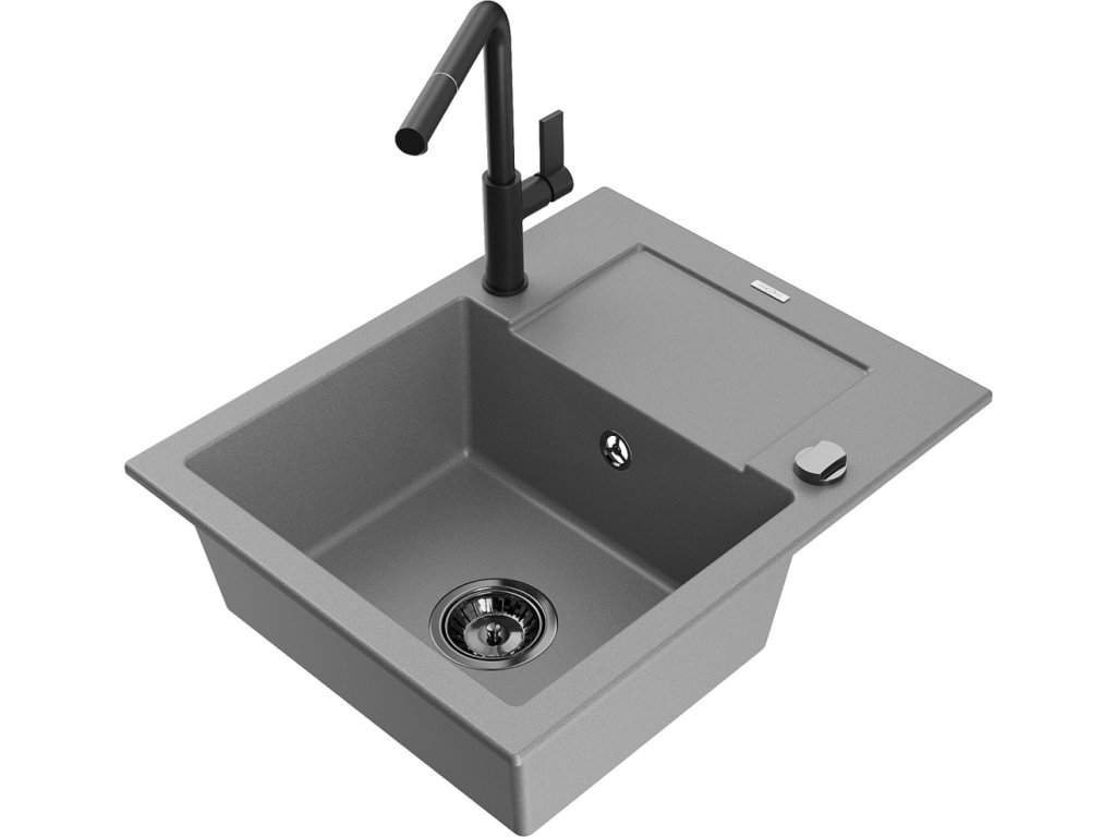 MEXEN/S - Enzo granitový dřez 1-miska s odkapávačem včetně baterie Flora, šedá 6506-71-670401-70-B + slevový kód