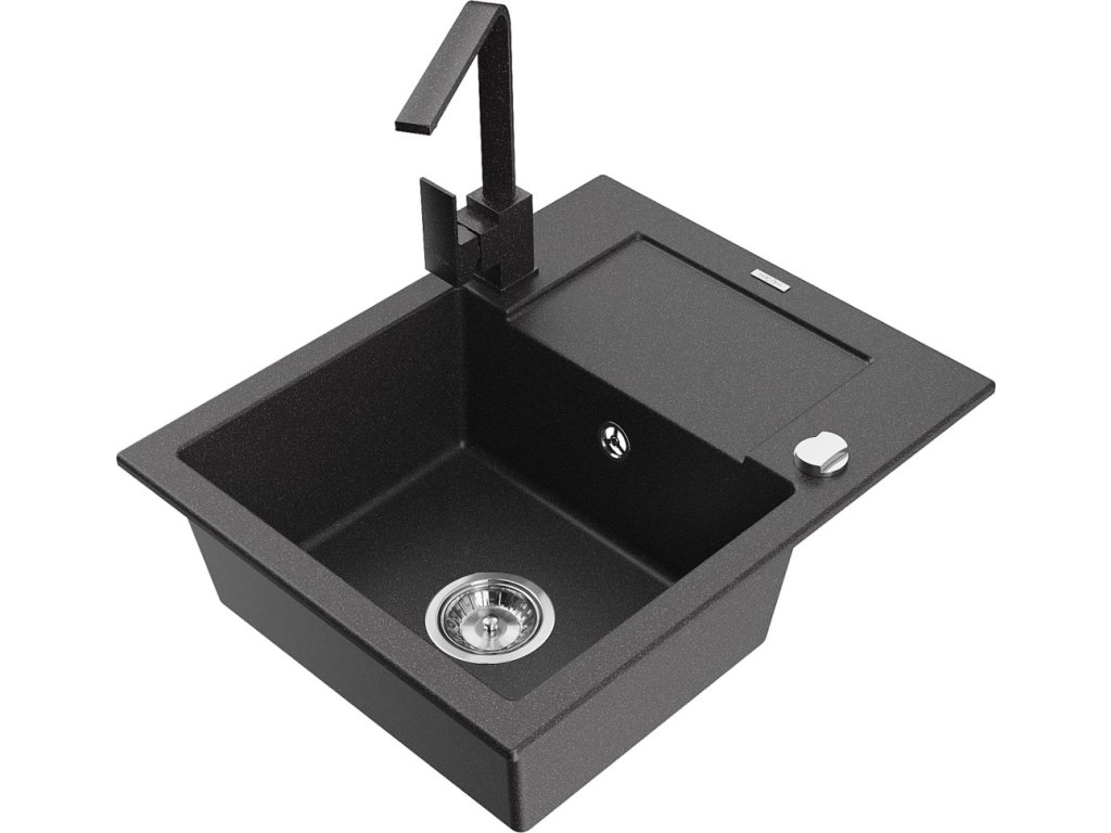 MEXEN/S - Enzo granitový dřez 1-miska s odkapávačem včetně baterie Rita, černý kropenatý 6506-76-670300-76