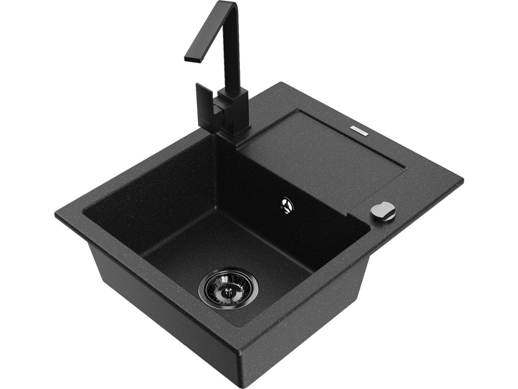 MEXEN/S - Enzo granitový dřez 1-miska s odkapávačem včetně baterie Rita, černý/stříbrný metalik 6506-73-670300-70-B + slevový kód