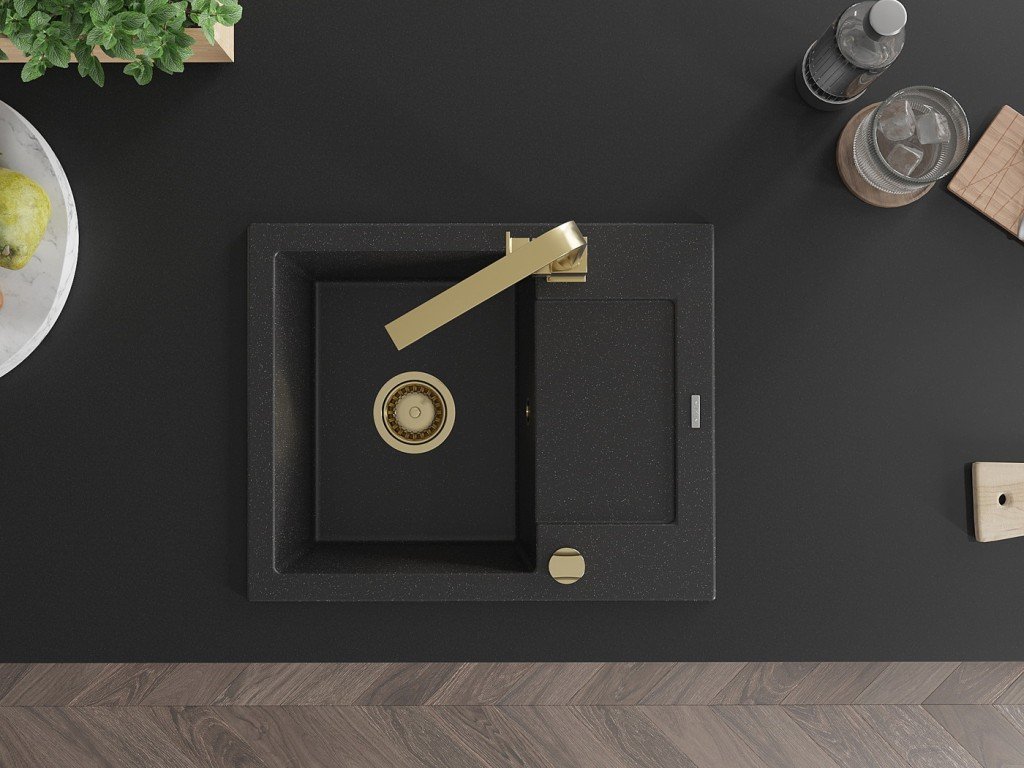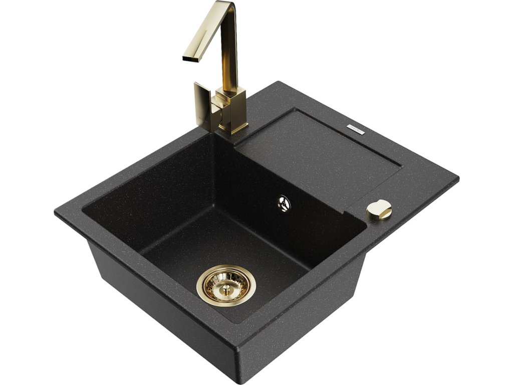 MEXEN/S - Enzo granitový dřez 1-miska s odkapávačem včetně baterie Rita, černý/stříbrný metalik 6506-73-670300-50 + slevový kód
