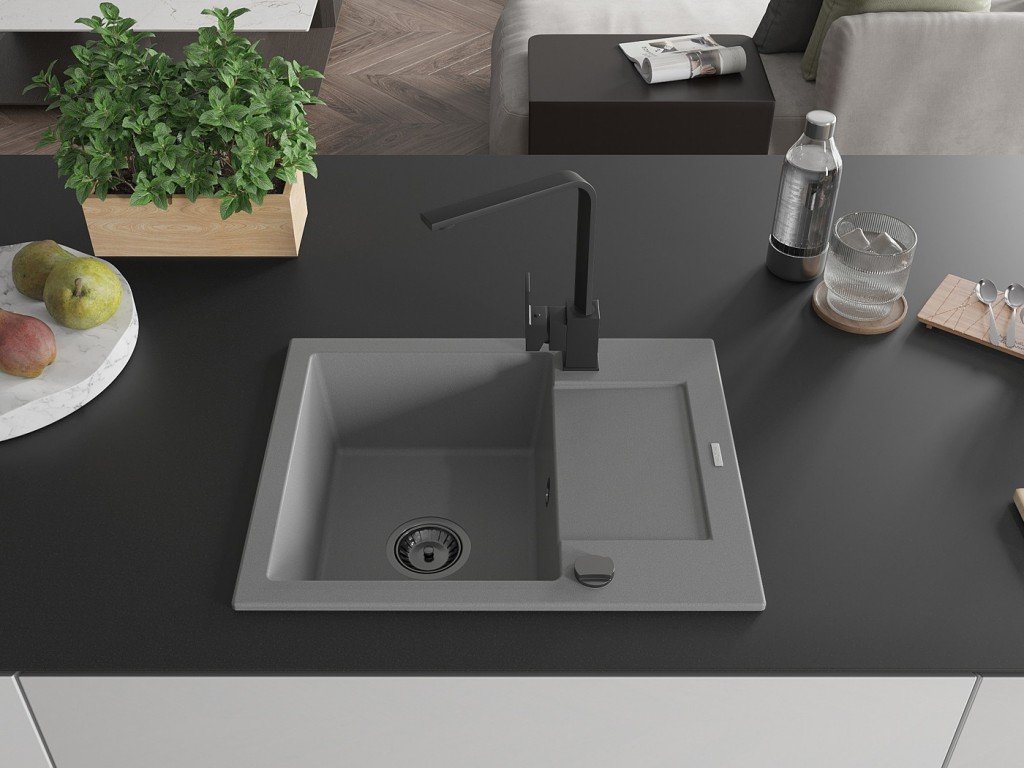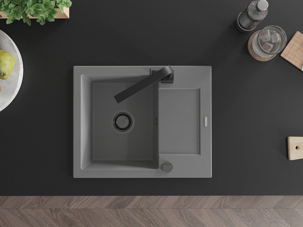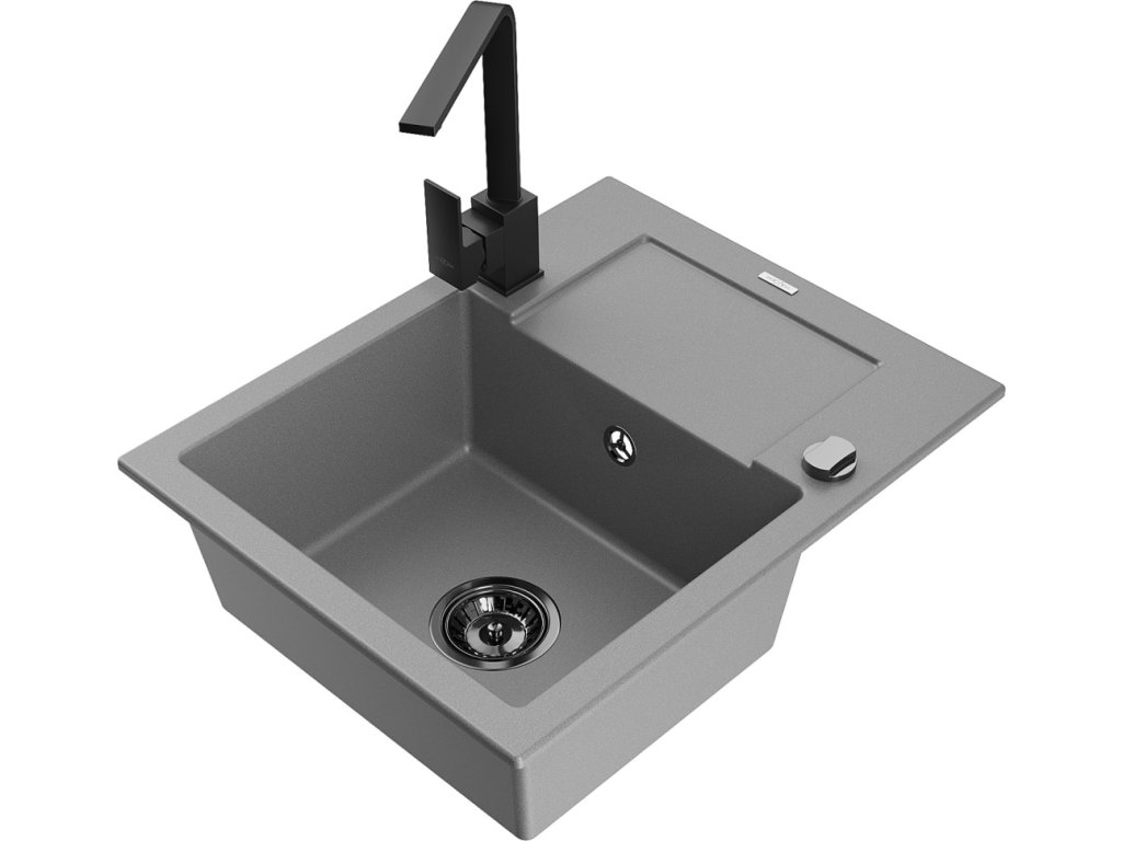 MEXEN/S - Enzo granitový dřez 1-miska s odkapávačem včetně baterie Rita, šedý 6506-71-670300-70-B