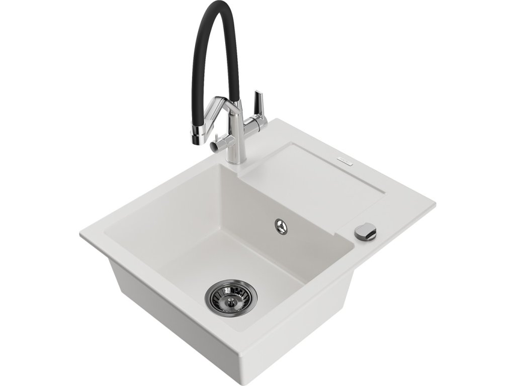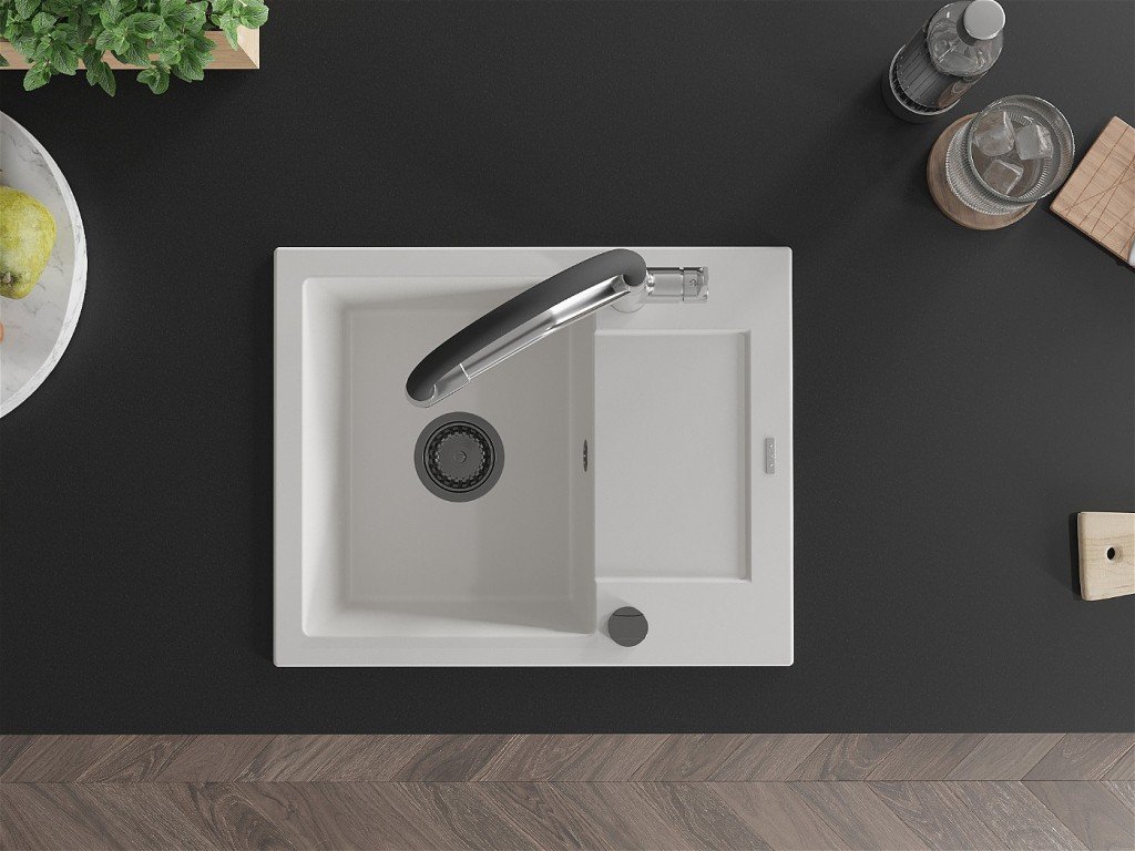 MEXEN/S - Enzo granitový dřez s odkapávačem včetně baterie Duo, bílá 6506-20-671701-07-B + slevový kód