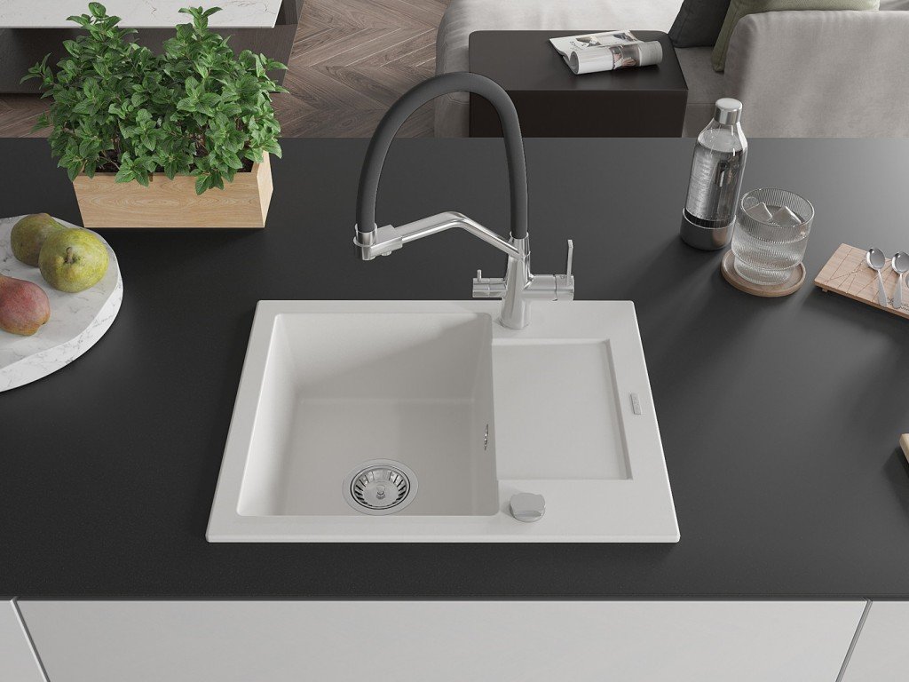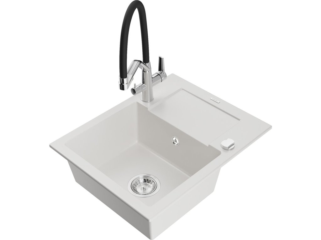 MEXEN/S - Enzo granitový dřez s odkapávačem včetně baterie Duo, bílá 6506-20-671701-07