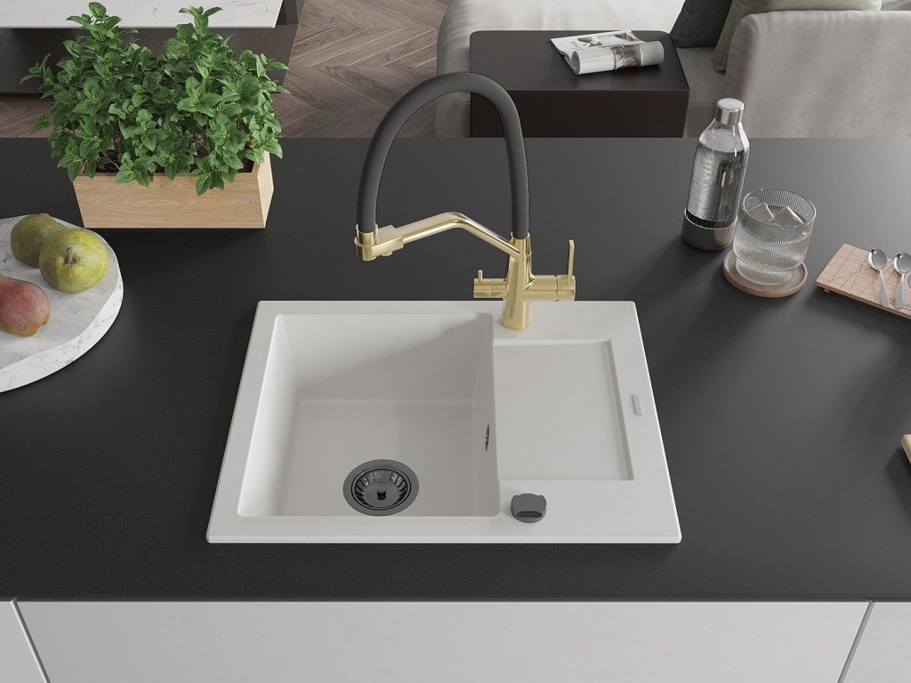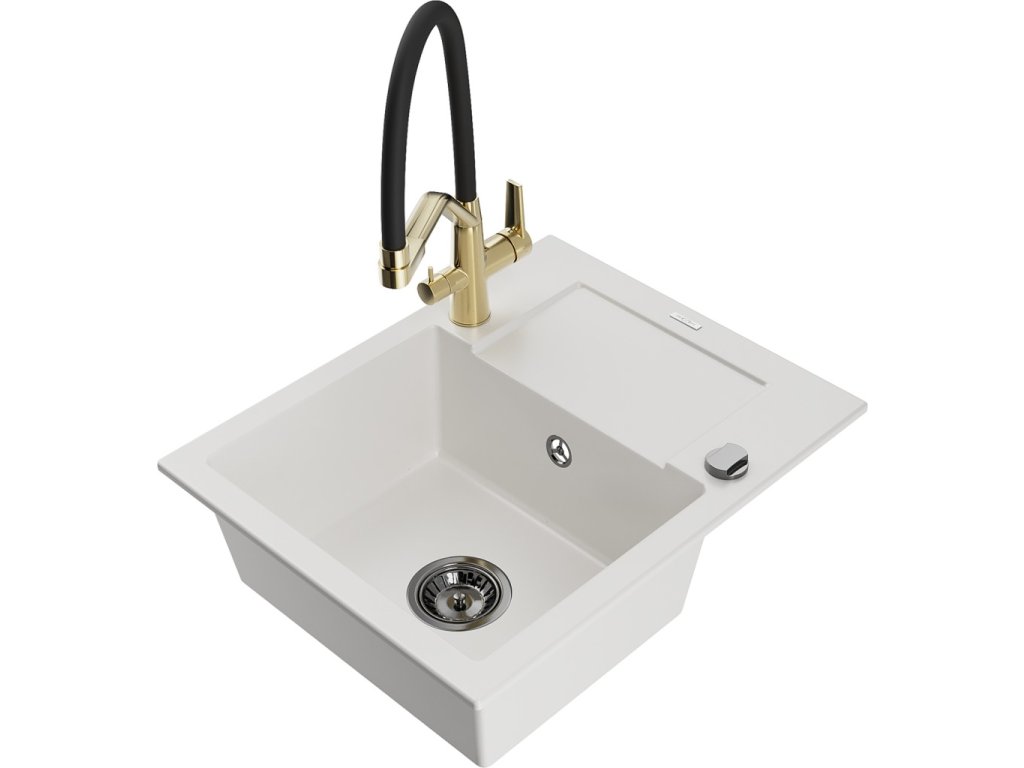 MEXEN/S - Enzo granitový dřez s odkapávačem včetně baterie Duo, bílá 6506-20-671701-57-B + slevový kód