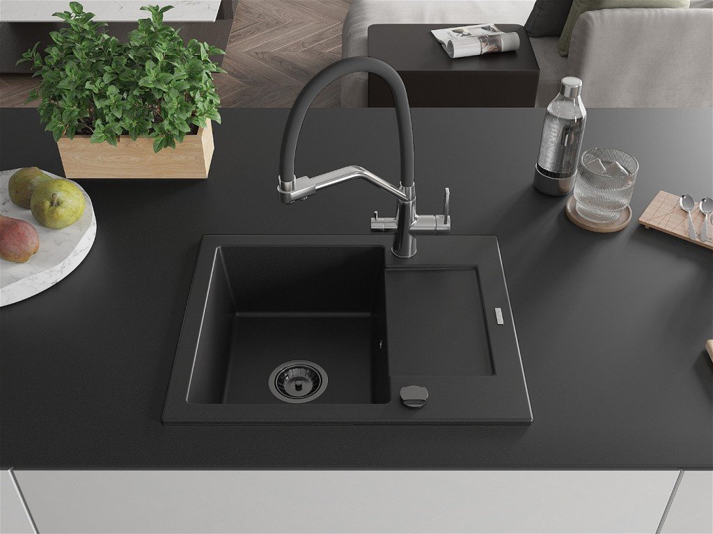 MEXEN/S - Enzo granitový dřez s odkapávačem včetně baterie Duo, černá 6506-77-671701-07-B