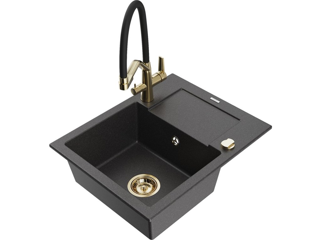 MEXEN/S - Enzo granitový dřez s odkapávačem včetně baterie Duo, černá kropenatá 6506-76-671701-57-G + slevový kód