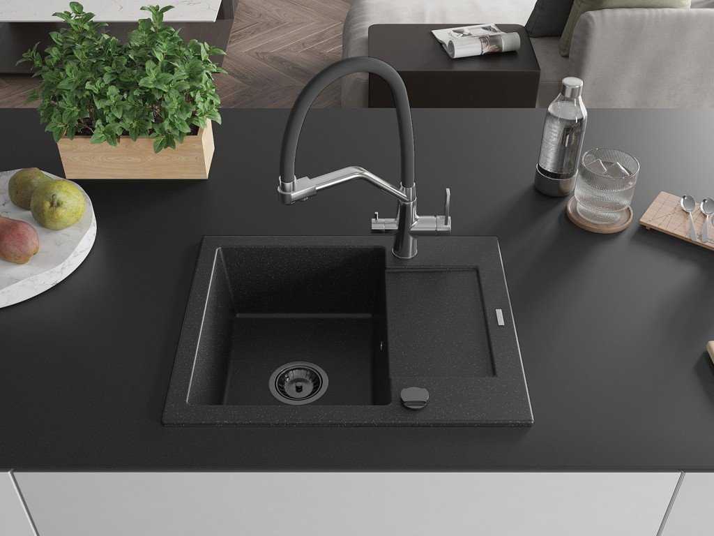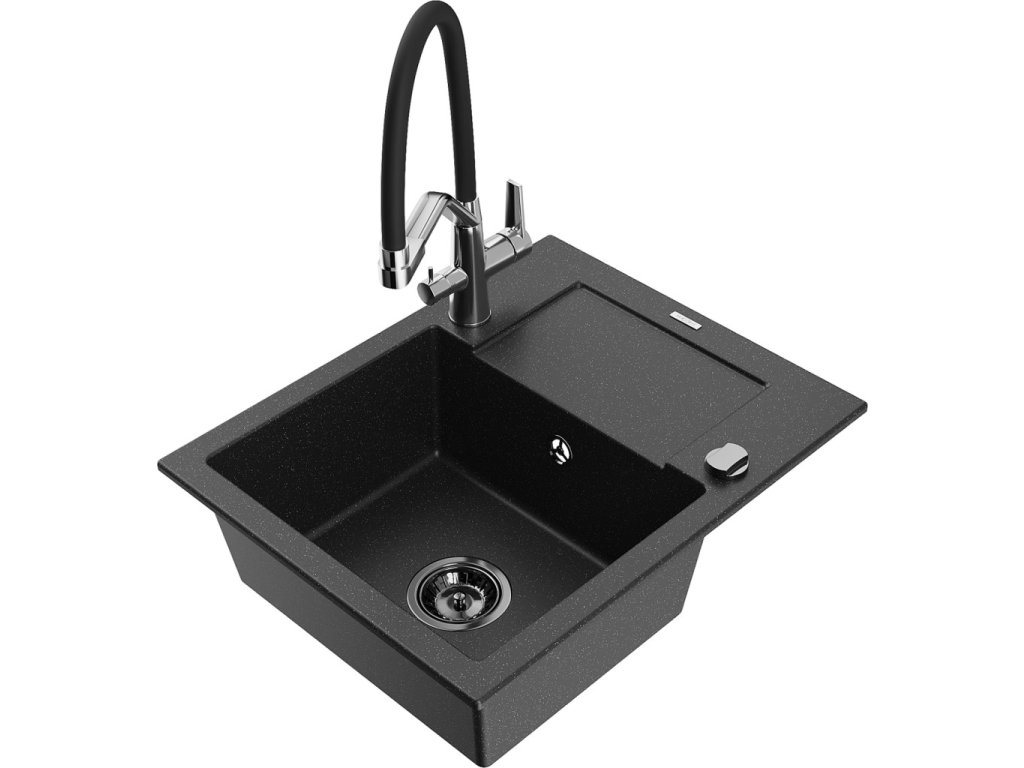 MEXEN/S - Enzo granitový dřez s odkapávačem včetně baterie Duo, černá/stříbrná metalik 6506-73-671701-07-B + slevový kód