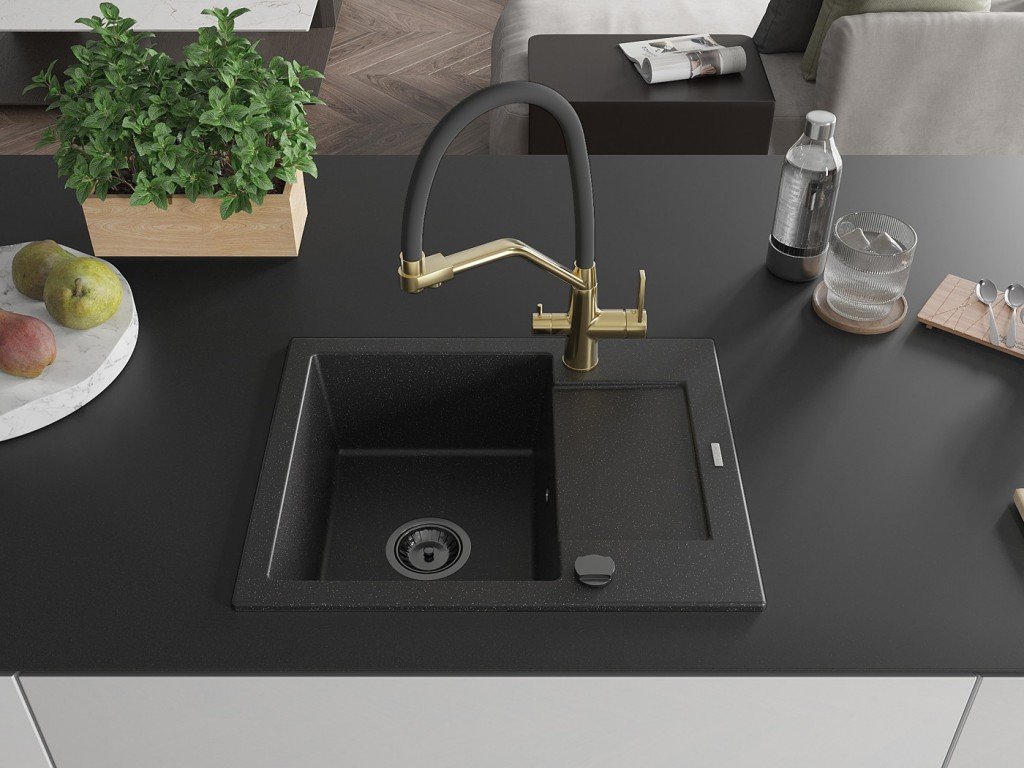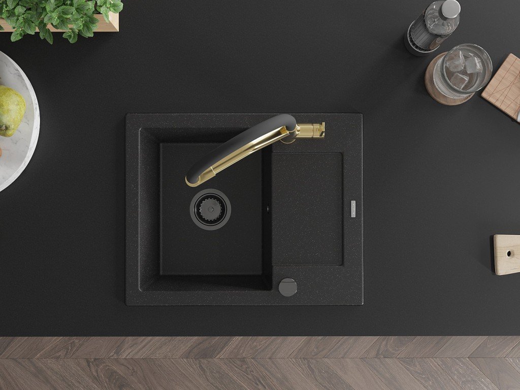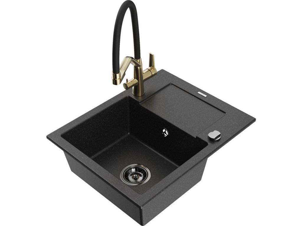 MEXEN/S - Enzo granitový dřez s odkapávačem včetně baterie Duo, černá/stříbrná metalik 6506-73-671701-57-B + slevový kód