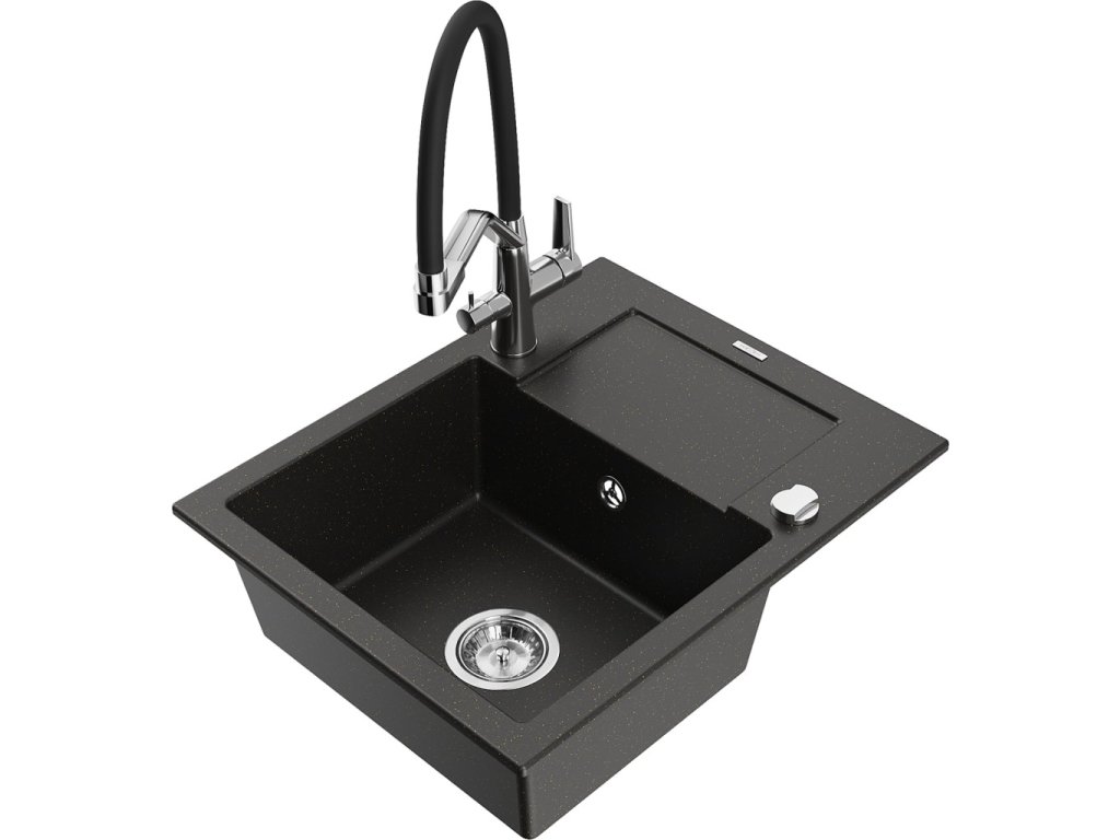 MEXEN/S - Enzo granitový dřez s odkapávačem včetně baterie Duo, černá/zlatá metalik 6506-75-671701-07 + slevový kód