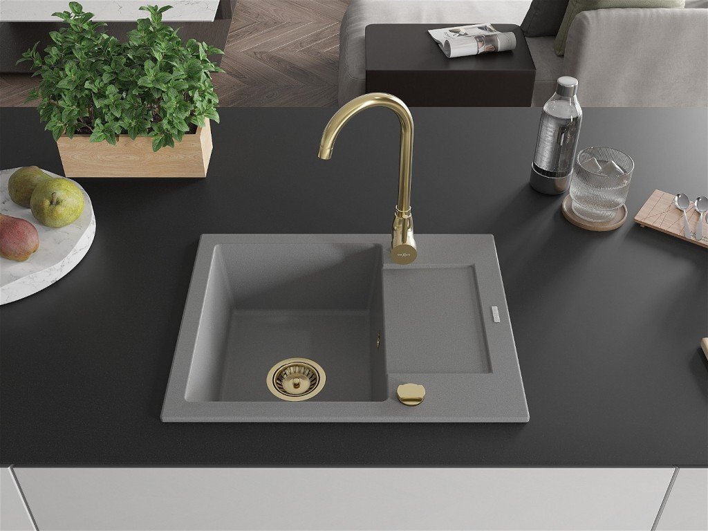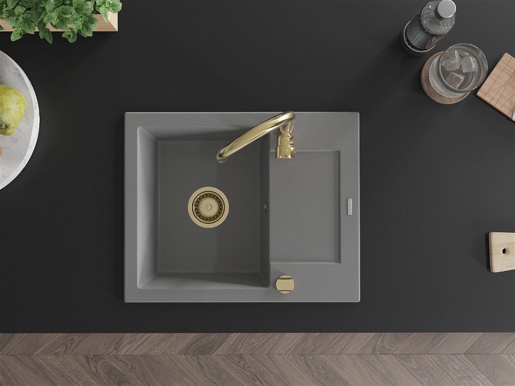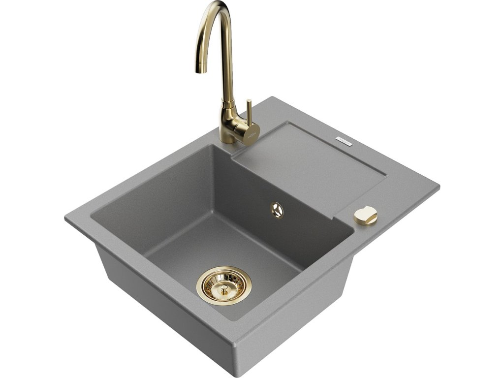 MEXEN/S - Enzo granitový dřez s odkapávačem včetně baterie Telma, šedá 6506-71-670200-50