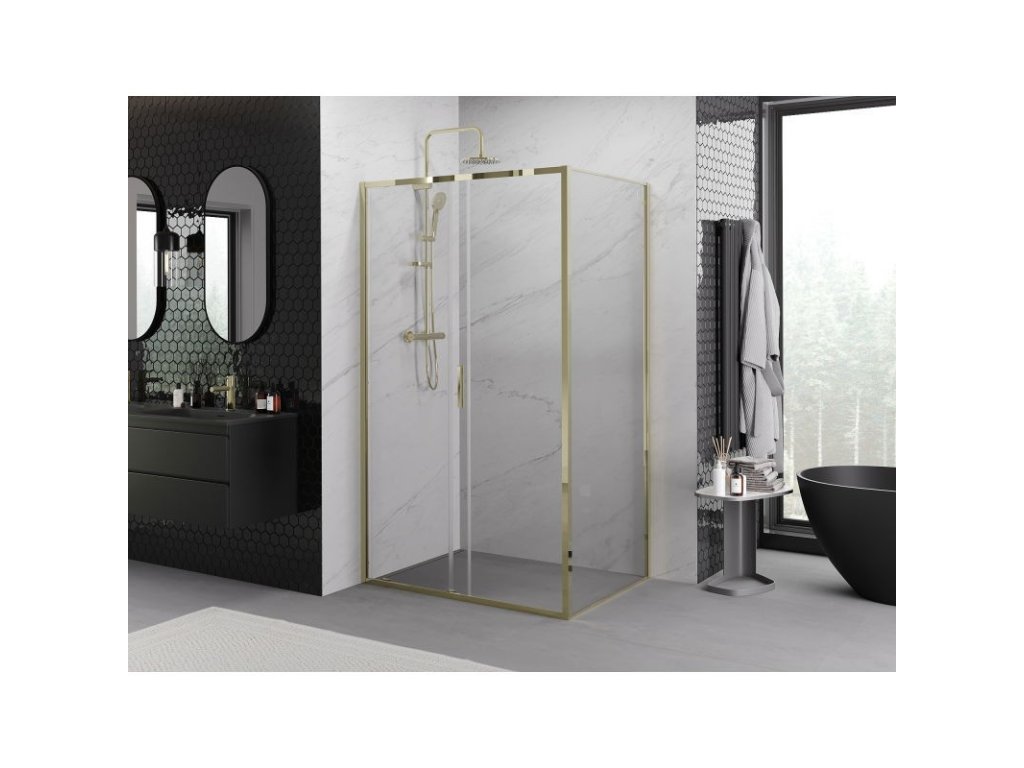 MEXEN/S - Exo sprchový kout, posuvné dveře 155 x 100, transparent, zlato 8151-155-100-50-00