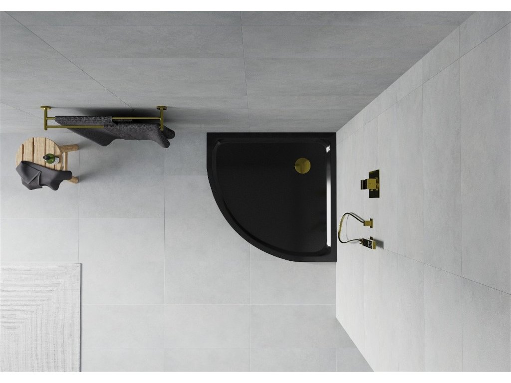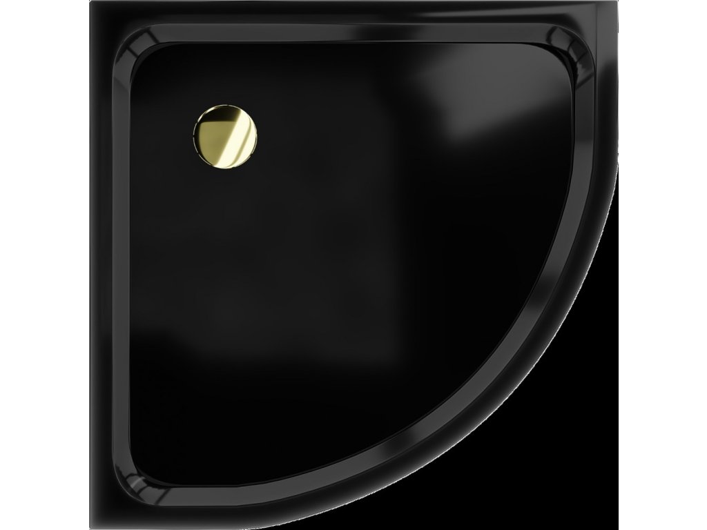 MEXEN/S - Flat sprchová vanička čtvrtkruhová slim 90 x 90, černá + zlatý sifon 41709090G