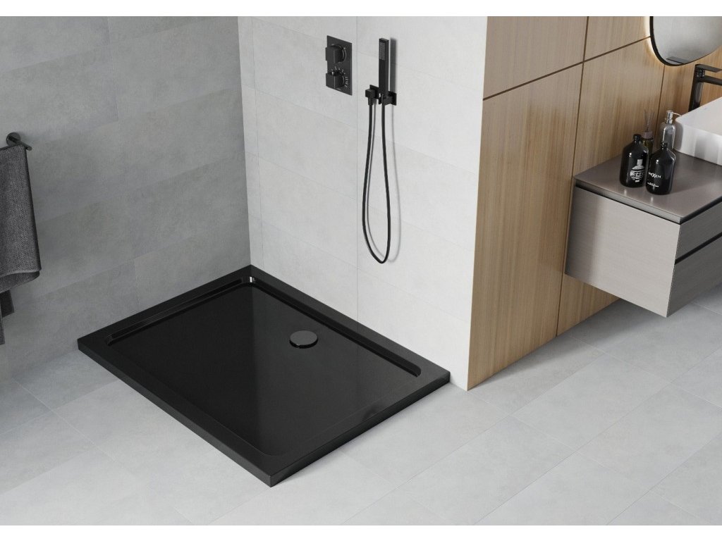 MEXEN/S - Flat sprchová vanička obdélníková slim 120 x 80, černá + černý sifon 40708012B