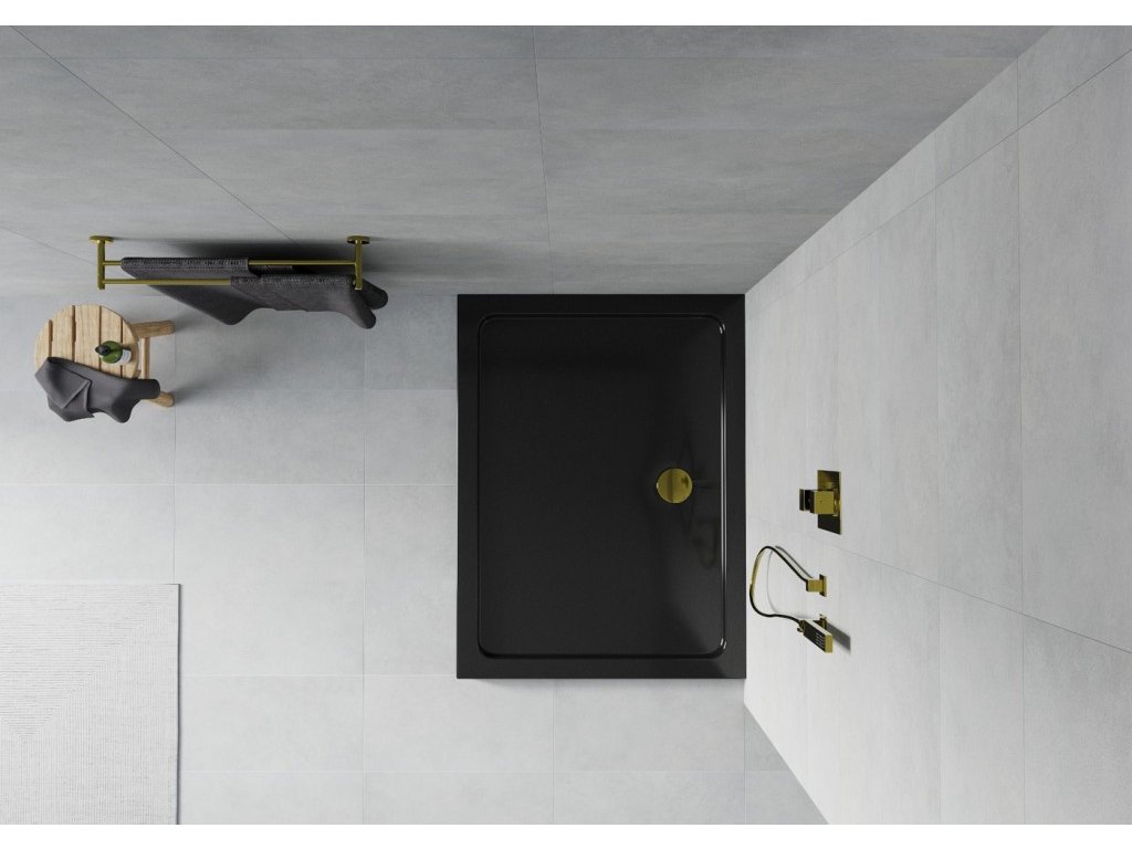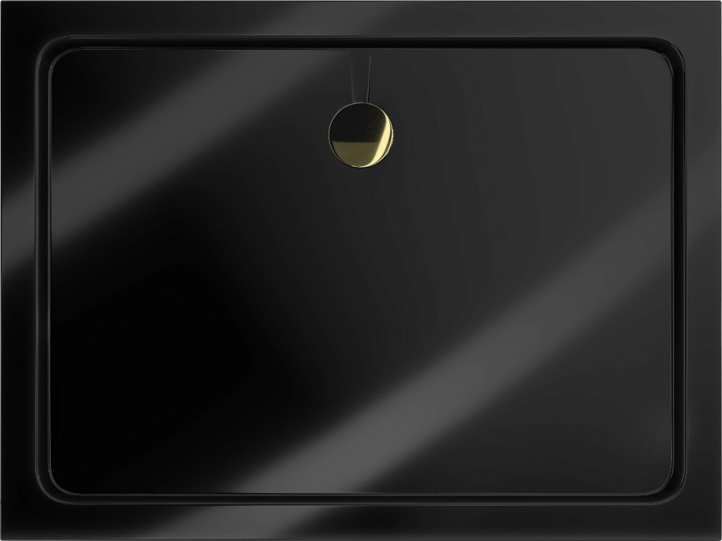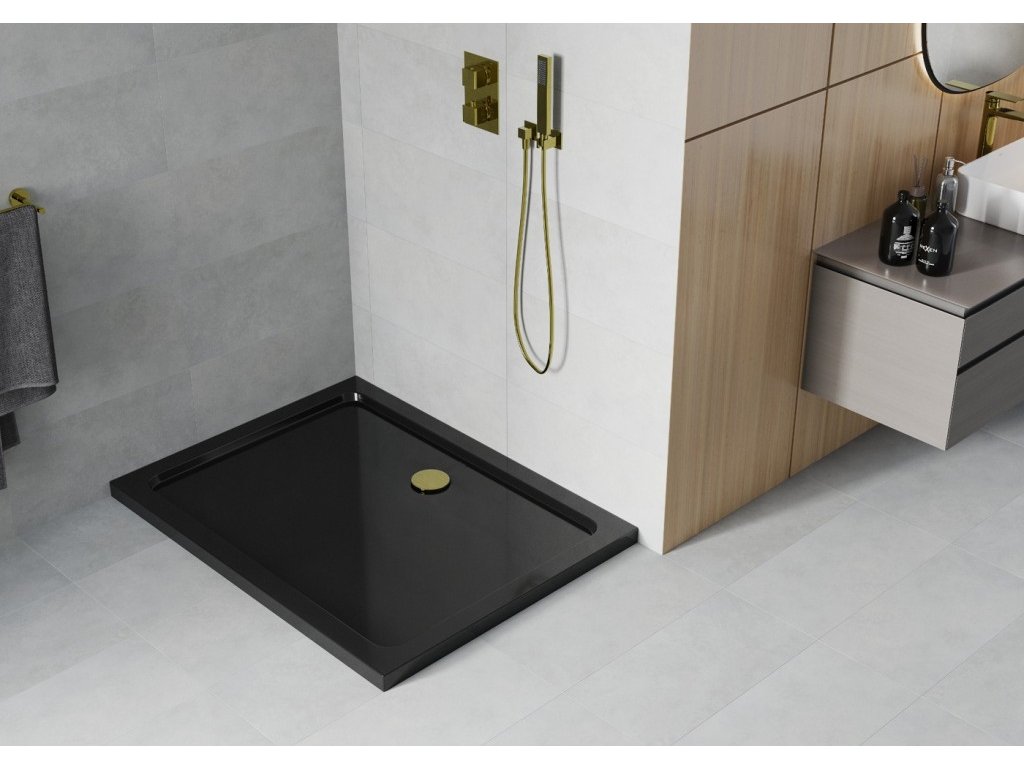MEXEN/S - Flat sprchová vanička obdélníková slim černá + zlatý sifon 40708010G