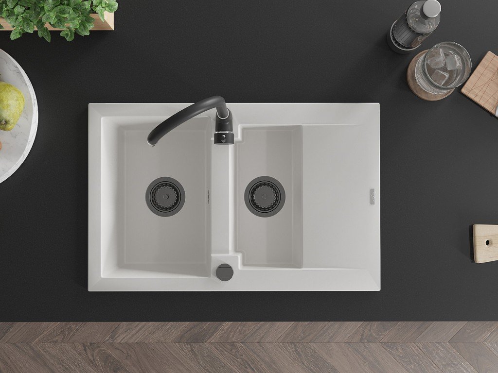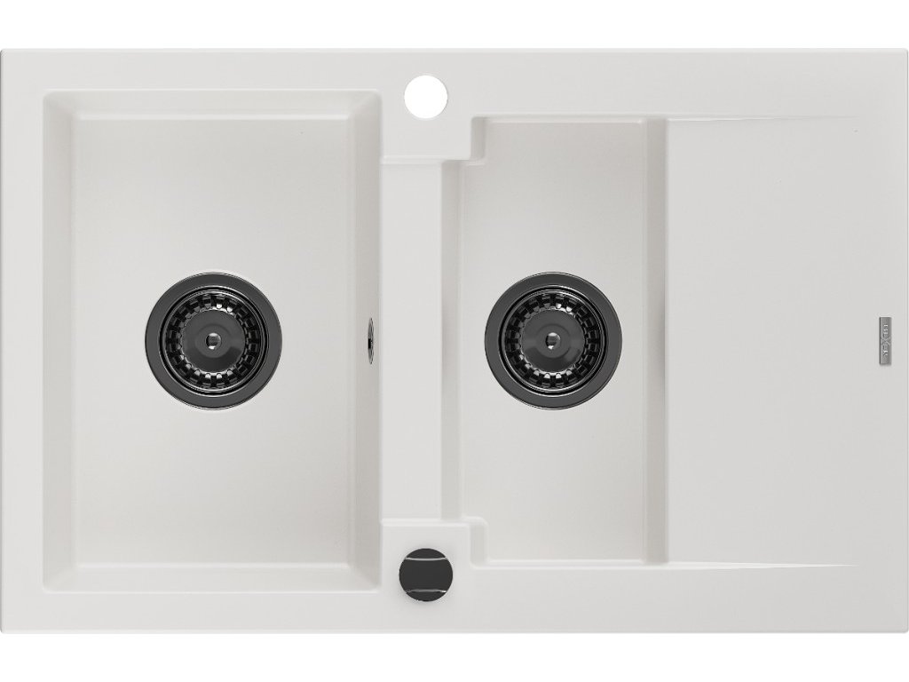 MEXEN/S - Gaspar granitový dřez 1.5 s odkapávačem 737 x 475 mm, bílá, černý sifon 6507731505-20-B