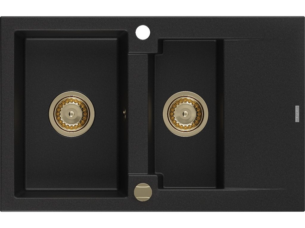 MEXEN/S - Gaspar granitový dřez 1.5 s odkapávačem 737 x 475 mm, černý, zlatý sifon 6507731505-77-G