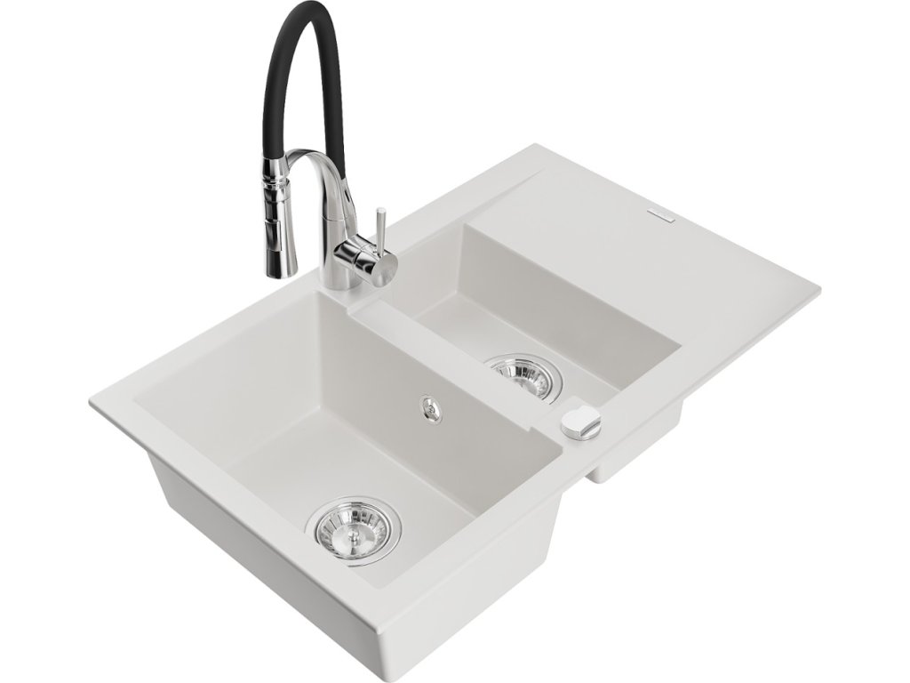 MEXEN/S - Gaspar granitový dřez 1.5 s odkapávačem včetně baterie Aster, bílá 6507-20-73450-07 + slevový kód