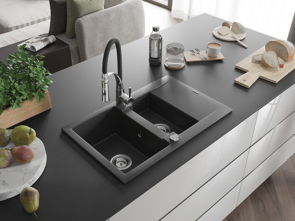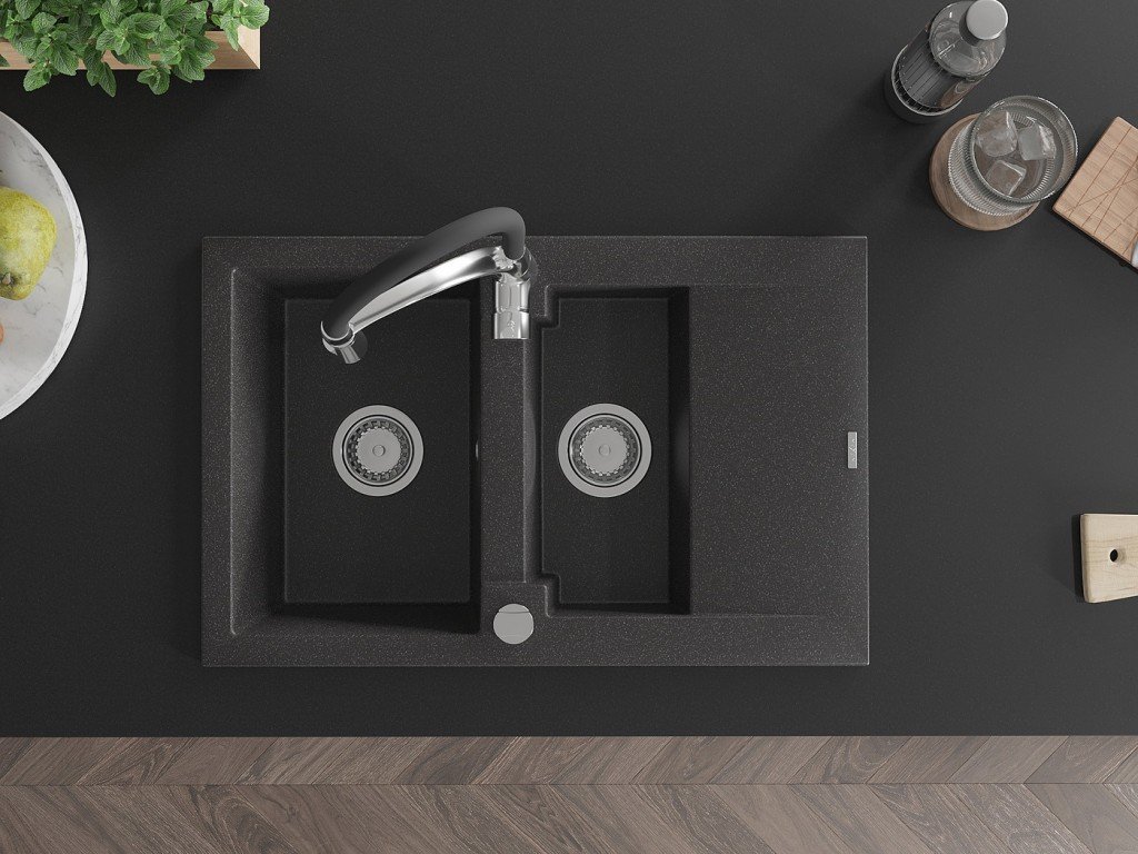 Granitový vestavný dřez s odkapem 77x44 cm v černé barvě kombinuje moderní design a vysokou odolnost. Vyroben z kvalitního granitového kompozitu, který odolává poškrábání,...