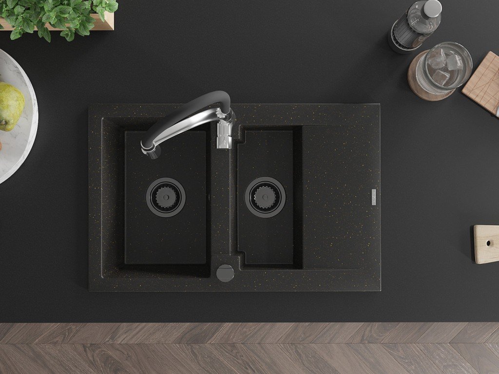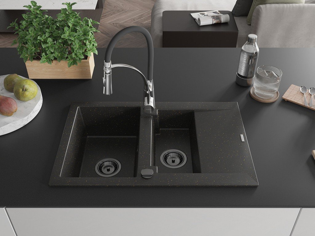 Granitový vestavný dřez s odkapem 77x44 cm v černé barvě kombinuje moderní design a vysokou odolnost. Vyroben z kvalitního granitového kompozitu, který odolává poškrábání,...