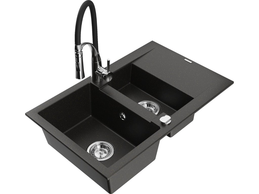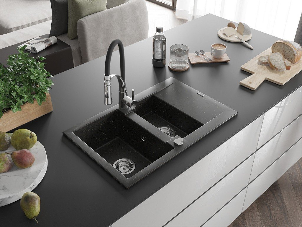 Granitový vestavný dřez s odkapem 77x44 cm v černé barvě kombinuje moderní design a vysokou odolnost. Vyroben z kvalitního granitového kompozitu, který odolává poškrábání,...