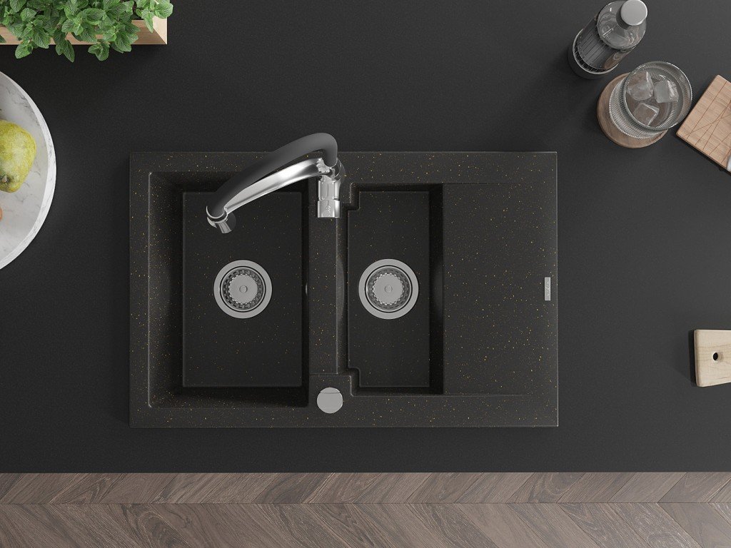 MEXEN/S - Gaspar granitový dřez 1.5 s odkapávačem včetně baterie Aster, černá/zlatá metalik 6507-75-73450-07 + slevový kód