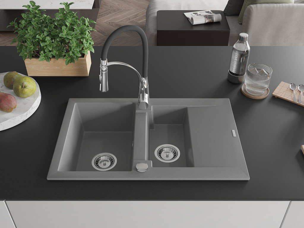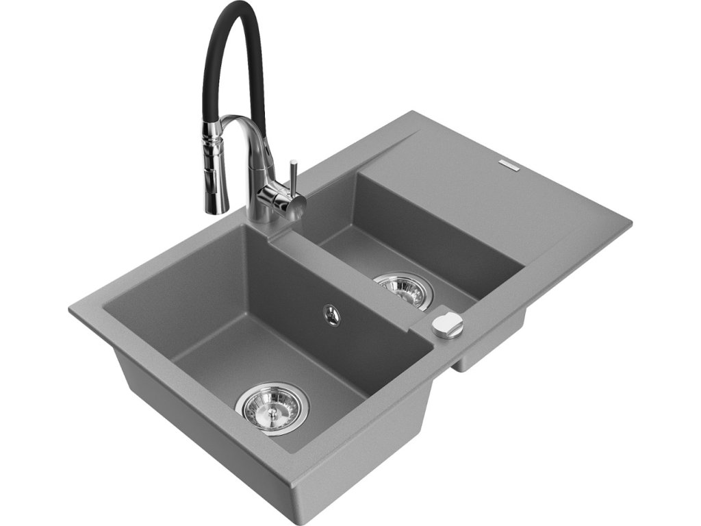 MEXEN/S - Gaspar granitový dřez 1.5 s odkapávačem včetně baterie Aster, šedá 6507-71-73450-07 + slevový kód