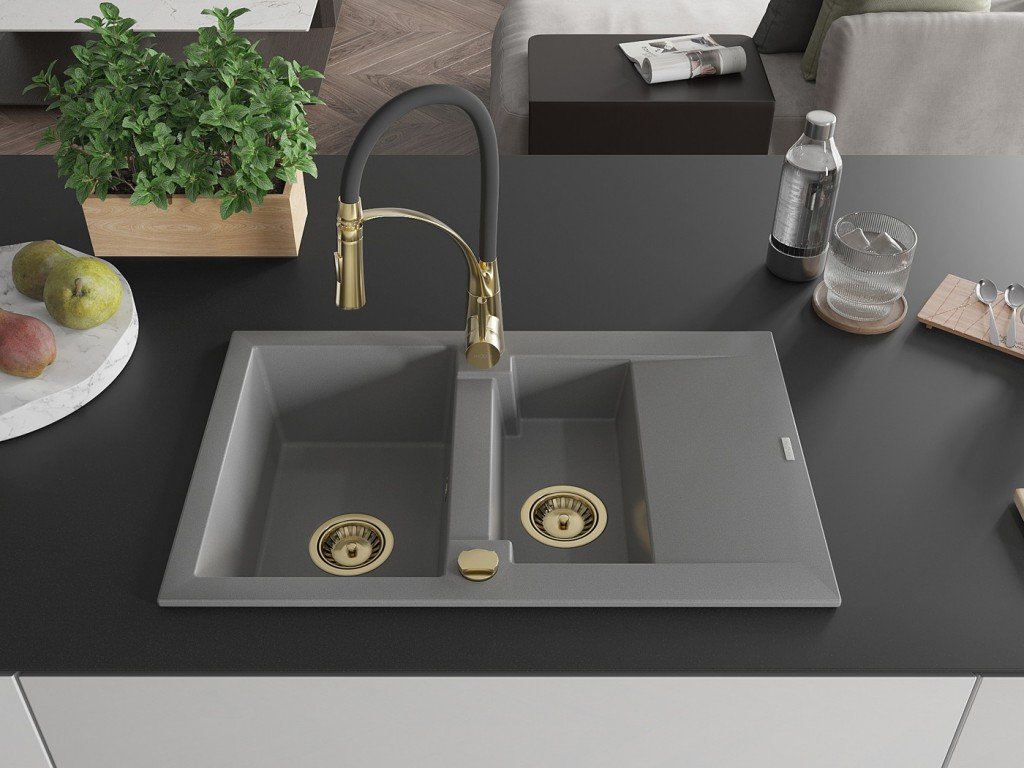MEXEN/S - Gaspar granitový dřez 1.5 s odkapávačem včetně baterie Aster, šedá 6507-71-73450-57-G + slevový kód