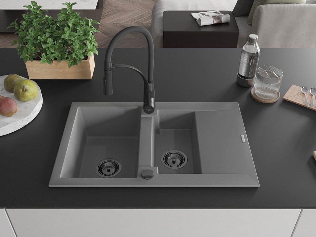 MEXEN/S - Gaspar granitový dřez 1.5 s odkapávačem včetně baterie Aster, šedá 6507-71-73450-70-B + slevový kód