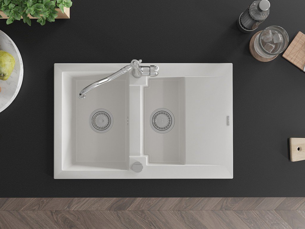 MEXEN/S - Gaspar granitový dřez 1.5 s odkapávačem včetně baterie Carla, bílá 6507-20-670700-00